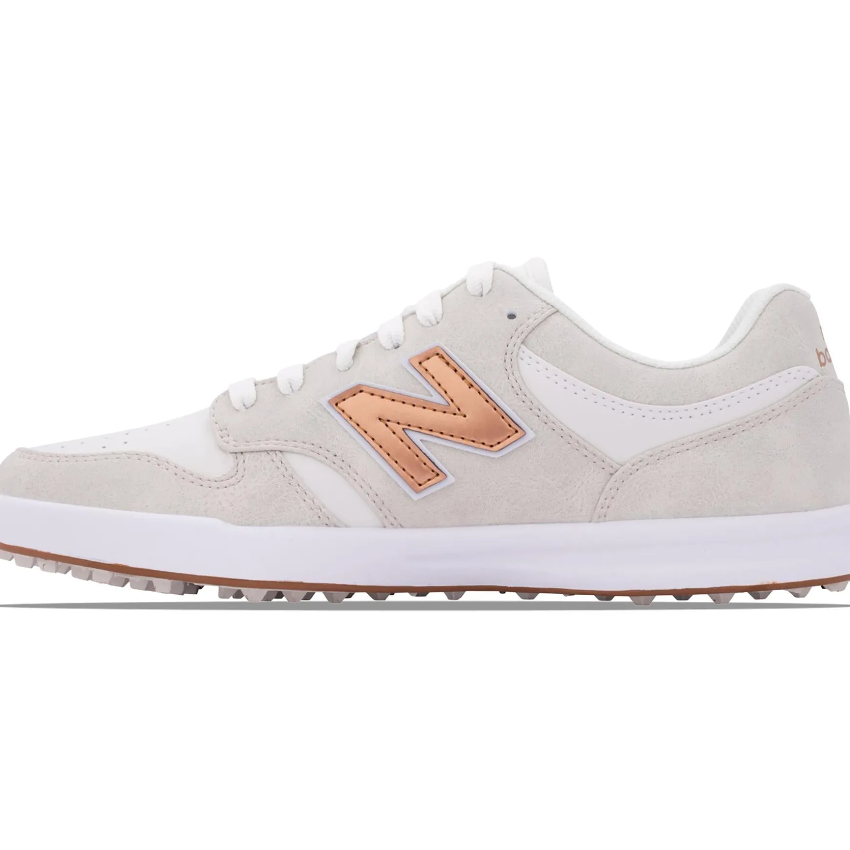The New Balance Women’s 480 Waterproof Spikeless Golf Shoes in Sand blend classic court-inspired style with modern golf technology, offering exceptional comfort, traction, and durability. Designed with a sleek, retro-inspired silhouette, these shoes provide premium performance on the course while maintaining an effortless off-course look. Crafted with a waterproof microfibre leather upper, these shoes keep your feet dry and comfortable in all conditions, ensuring long-lasting protection from the elements. The NDurance spikeless rubber outsole is engineered to move naturally with your foot, providing optimal grip, flexibility, and durability for confident swings and stability on any surface.
