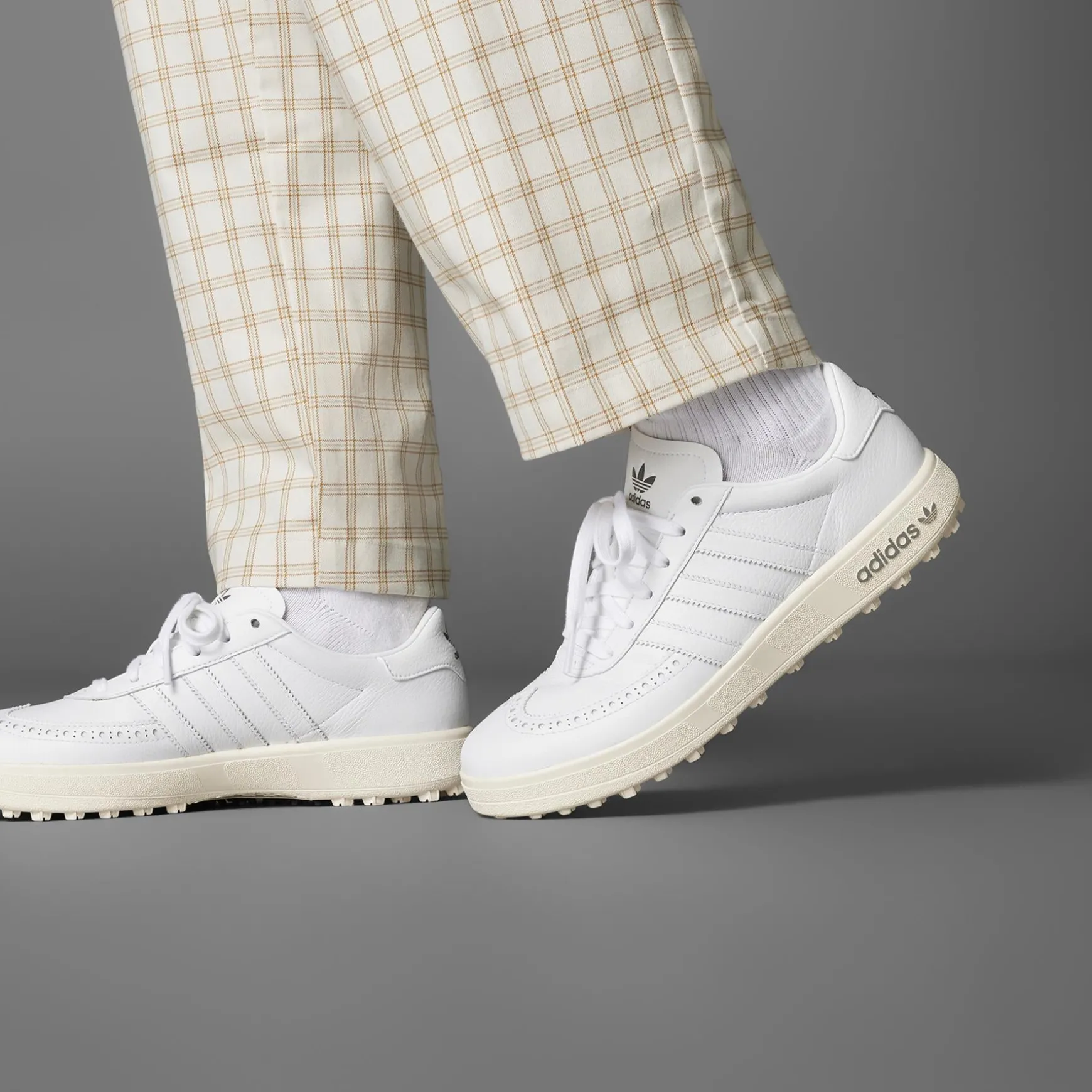 Step up your golf game with the adidas Golf Originals Coursecup Spikeless Golf Shoes in a stylish white and iron combination. Engineered for golfers who seek both performance and versatility, these shoes feature a lightweight synthetic upper that delivers breathability and flexibility throughout your round. The spikeless design ensures adaptable traction, making them suitable for various terrains both on and off the course. Additionally, the shoes incorporate cushioning technology to provide responsive comfort, allowing you to stay focused on your game without distraction. Designed with a modern aesthetic and advanced support features, the Coursecup is the perfect blend of style and functionality for golfers of all levels.