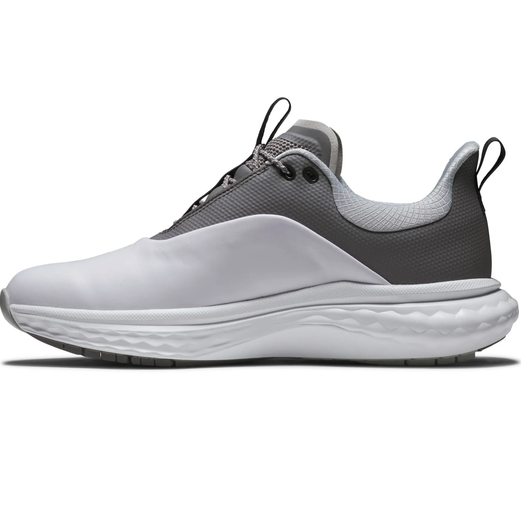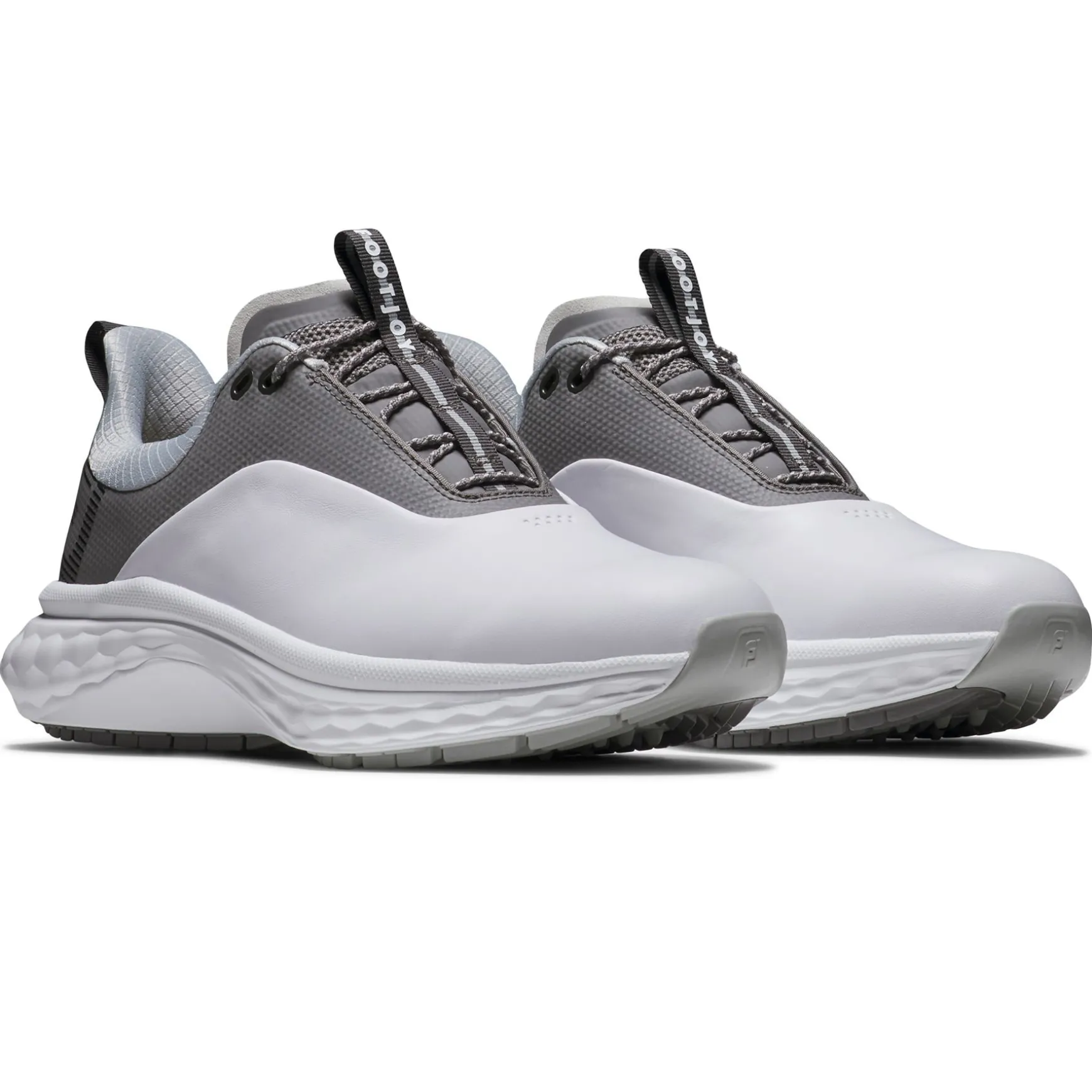 The FootJoy FJ Quantum Golf Shoes in White/Grey/Silver deliver exceptional comfort and performance for golfers who demand style and functionality. Featuring SofFOAM cushioning and multi-dimensional traction, these shoes provide a plush feel and enhanced grip for both walking and playing. The athletic profile, combined with advanced features, ensures all-day support and stability on the course.