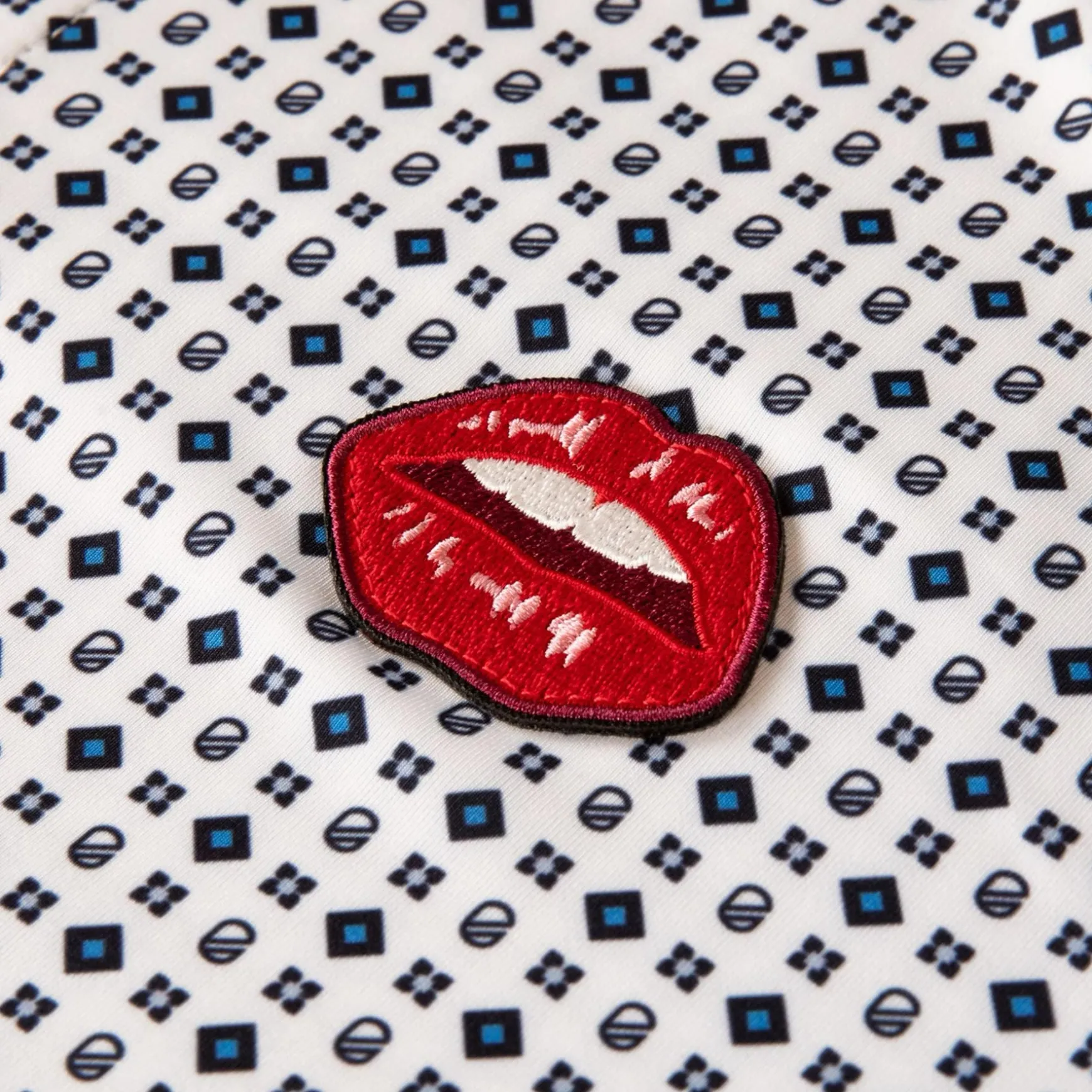 * Signature Branding: Features an embroidered “Bisou” lips patch at the left chest for a bold, stylish detail.