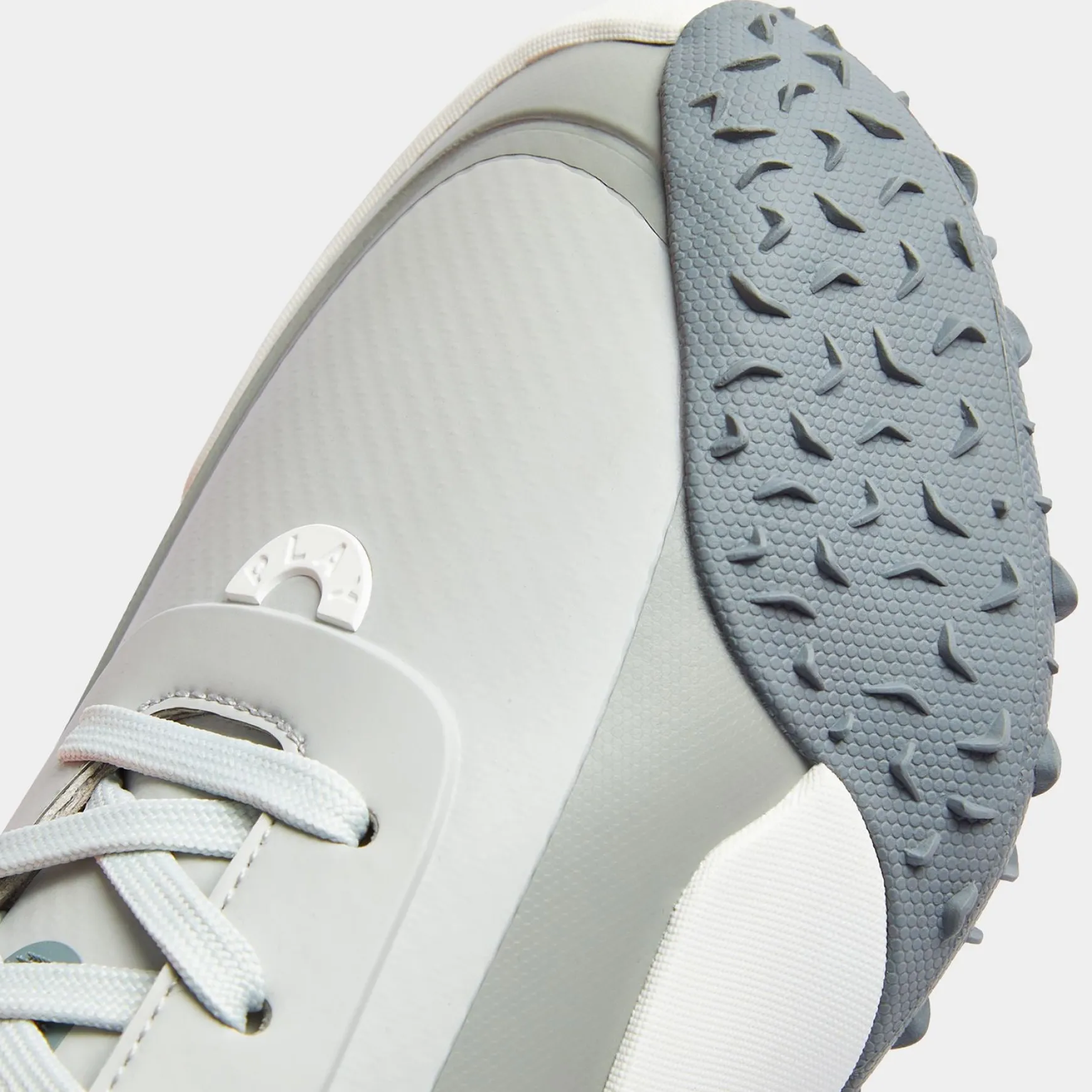 The G/FORE G/18 TPU Golf Shoes in Nimbus/Charcoal deliver cutting-edge innovation and exceptional comfort to enhance your golfing experience. Designed with a wide base and cushioned foam interior, these shoes provide unmatched support and comfort that lasts well beyond 18 holes. Featuring a rounded, podular sole with a crash pad at the heel and a traction rubber toe wrap, the G/18 ensures stability and grip on dynamic terrains. Waterproof TPU construction and an enhanced heel-to-toe rocker design make these shoes ideal for navigating any course with ease and style.