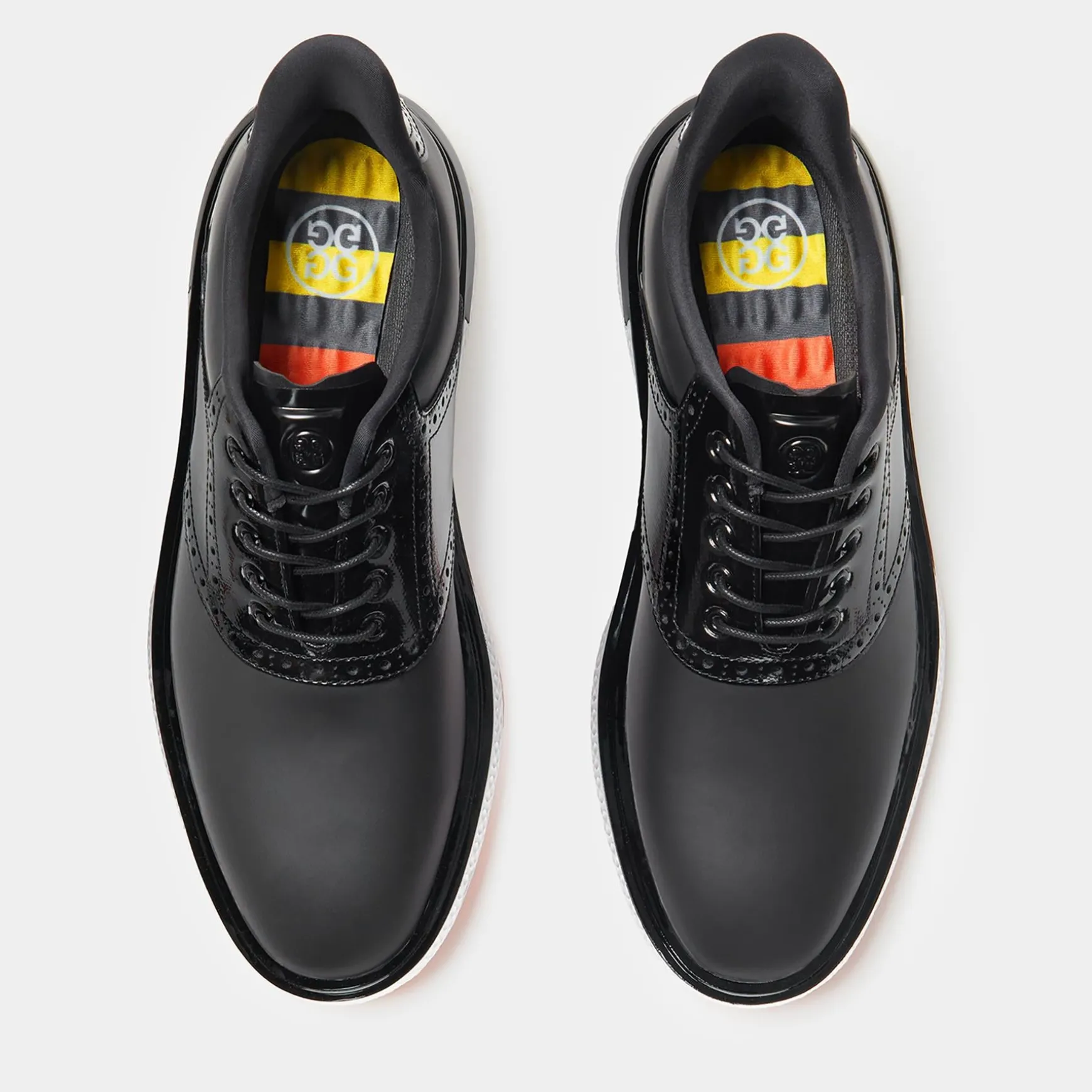 Introducing the GALLIVAN2R G/LOCK Saddle Golf Shoes from G/FORE, a perfect fusion of the MG4+’s cutting-edge performance features and the classic elegance of the Gallivanter silhouette. This innovative footwear addition boasts replaceable SoftSpikes, an auxetic lattice midsole, heel counter security, and a cushioned interior for unparalleled comfort. The performance textile lining enhances breathability, while the ultra-lightweight design ensures maximum stability with every swing. Additionally, the waterproof TPU upper ensures that adverse weather conditions won’t impede your game. Elevate your golfing experience with the GALLIVAN2R G/LOCK Saddle Golf Shoes, designed for the modern golfer who demands both style and functionality.