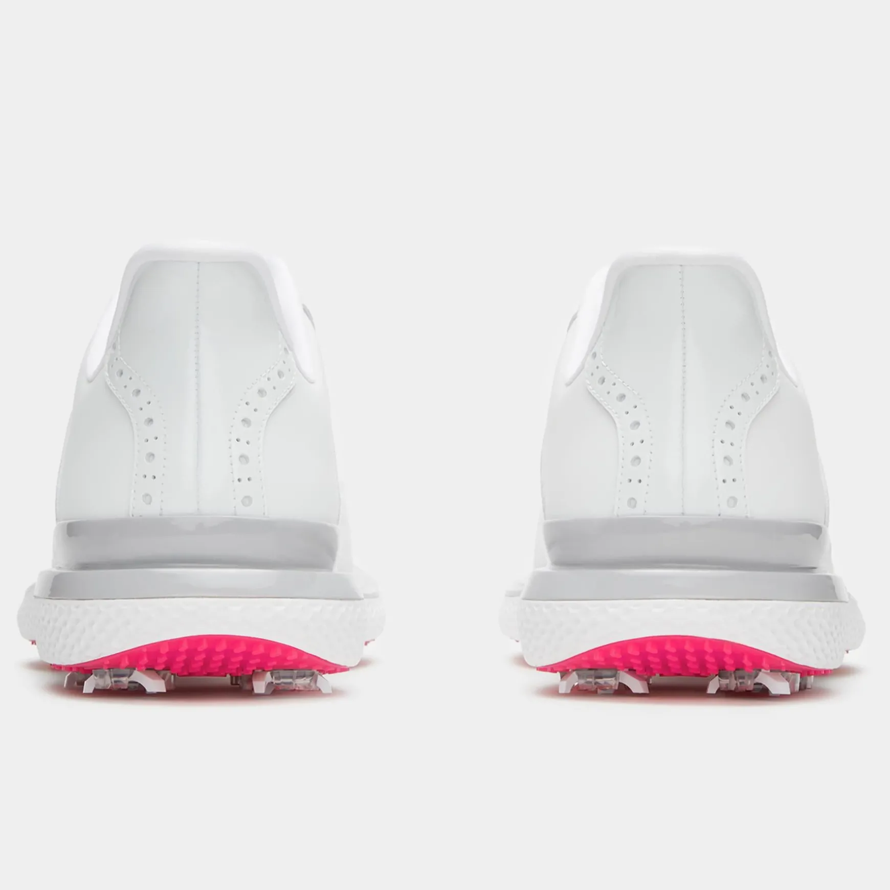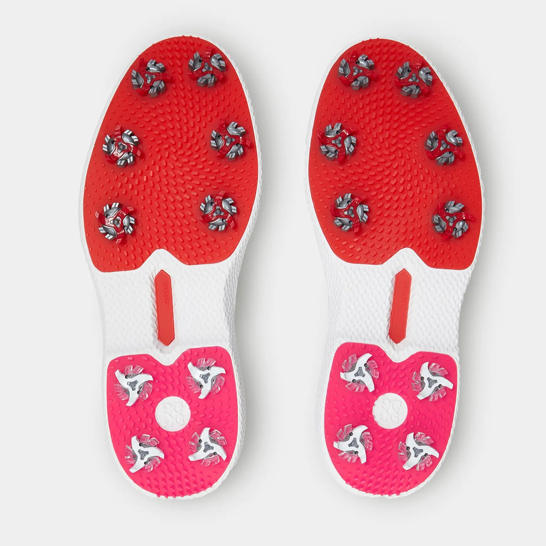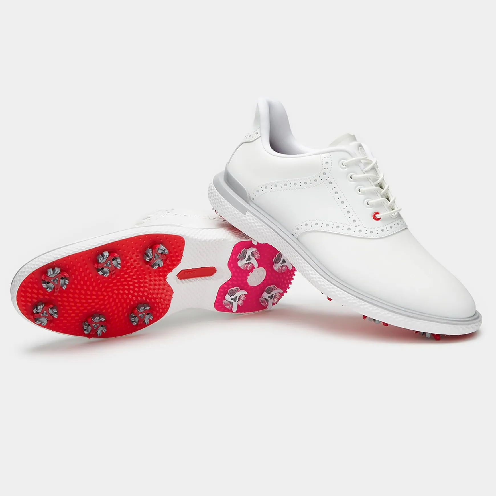 Introducing the GALLIVAN2R G/LOCK Saddle Golf Shoes from G/FORE, a perfect fusion of the MG4+’s cutting-edge performance features and the classic elegance of the Gallivanter silhouette. This innovative footwear addition boasts replaceable SoftSpikes, an auxetic lattice midsole, heel counter security, and a cushioned interior for unparalleled comfort. The performance textile lining enhances breathability, while the ultra-lightweight design ensures maximum stability with every swing. Additionally, the waterproof TPU upper ensures that adverse weather conditions won’t impede your game. Elevate your golfing experience with the GALLIVAN2R G/LOCK Saddle Golf Shoes, designed for the modern golfer who demands both style and functionality.