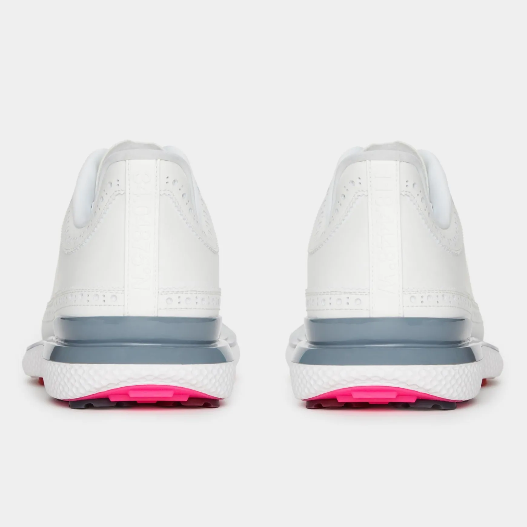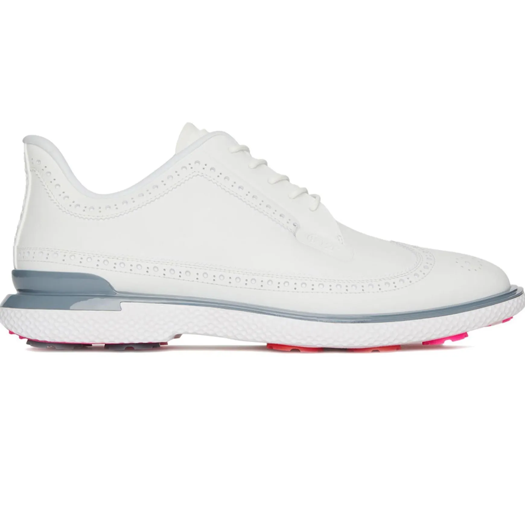 The G/FORE GALLIVAN2R Longwing Golf Shoes in Snow/Nimbus merge the classic elegance of the Gallivanter with the cutting-edge performance of the MG4+. Designed for golfers who demand both style and function, these shoes feature a waterproof TPU upper for weather resistance, an auxetic lattice midsole for exceptional comfort, and an integrated rubber cleat system for superior stability and traction. Lightweight, breathable, and odour-inhibiting, these shoes deliver out-of-the-box comfort and support for every swing.