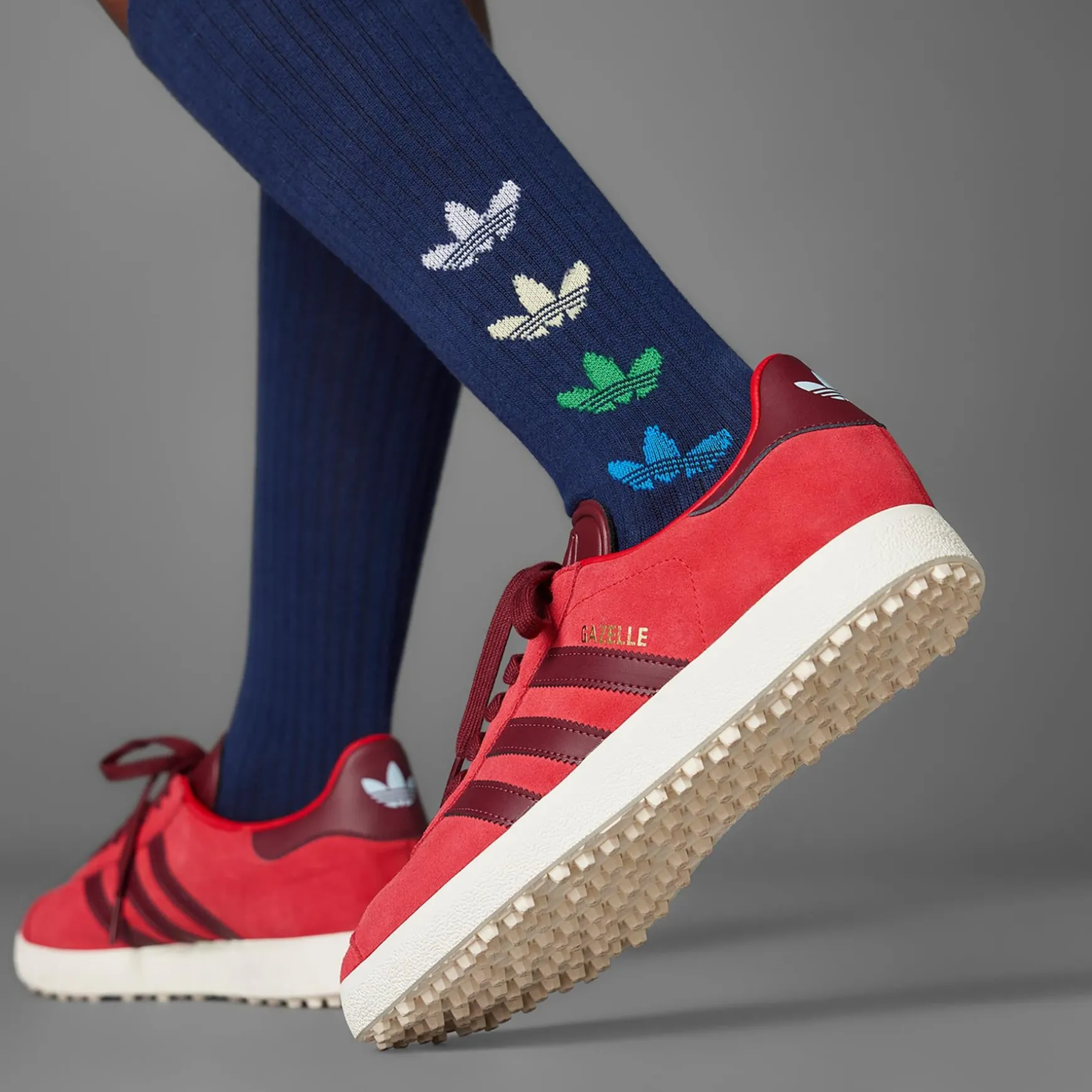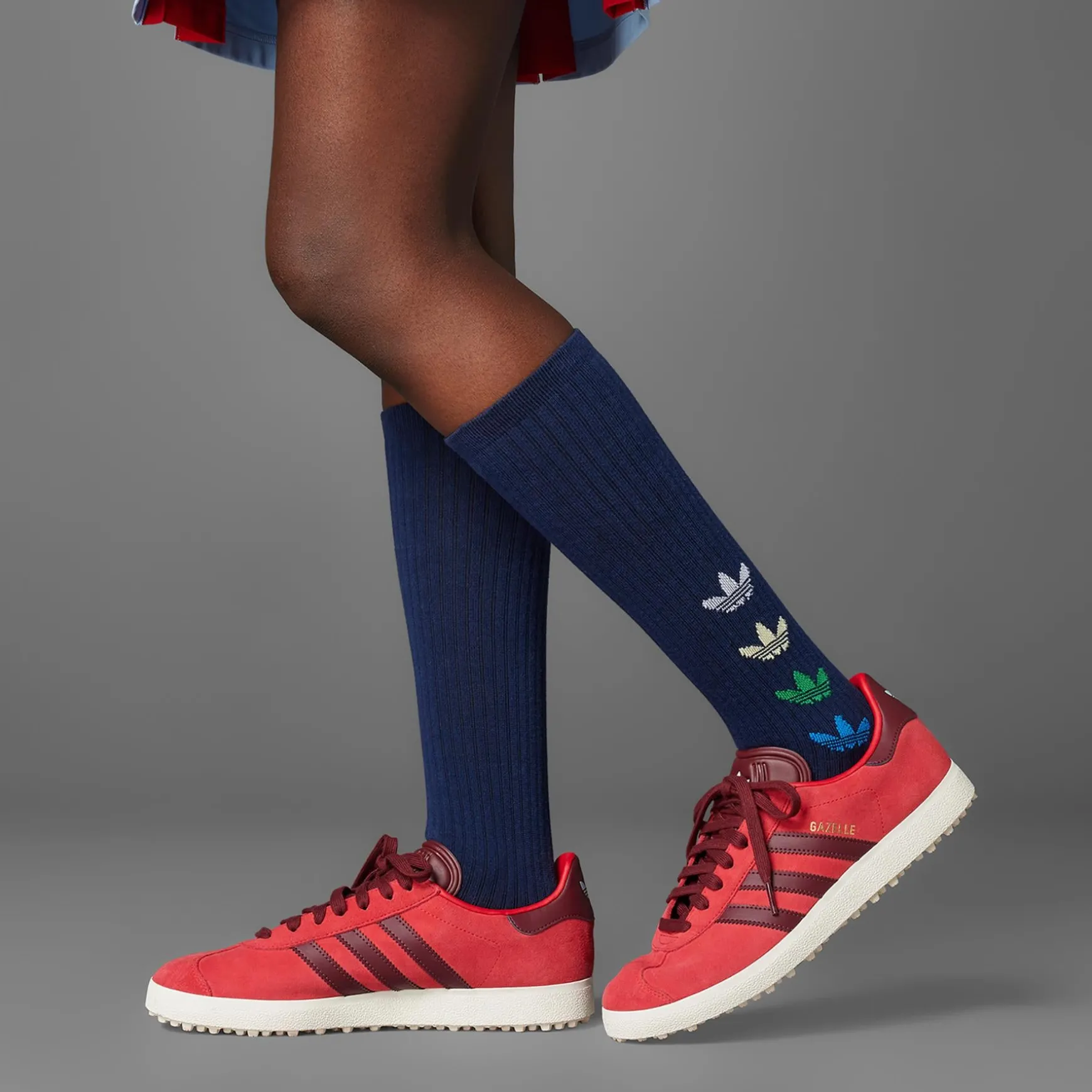 Infuse vibrant energy into your golf wardrobe with the adidas Golf Originals Gazelle Spikeless Golf Shoes in Better Scarlet, White, and Clear Sky. These shoes are inspired by the classic Gazelle design, offering a bold aesthetic combined with modern golf performance features. Built with a lightweight synthetic upper, they ensure breathability and flexibility, keeping your feet comfortable during every swing. The spikeless outsole provides reliable traction across various terrains, making them suitable for both the golf course and casual settings. Enhanced with responsive cushioning, these shoes deliver superior comfort and support throughout your round. The bright colourway adds a distinctive flair, perfect for golfers who want to stand out while enjoying premium performance.
