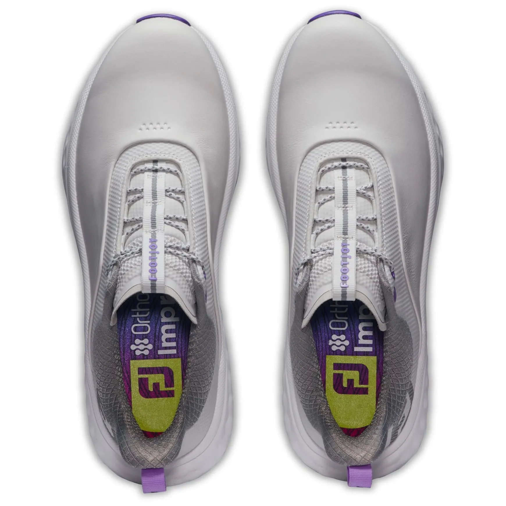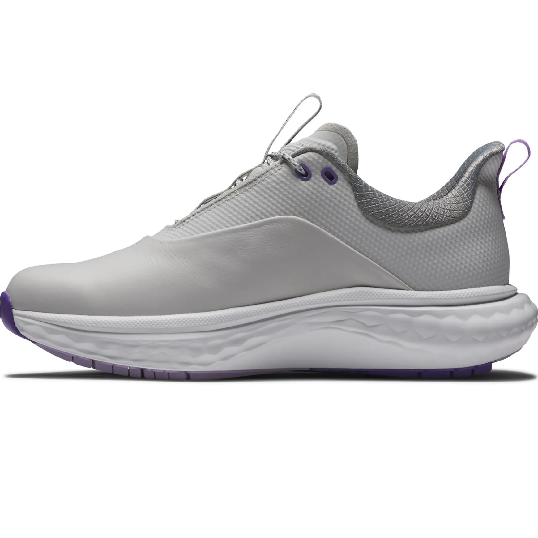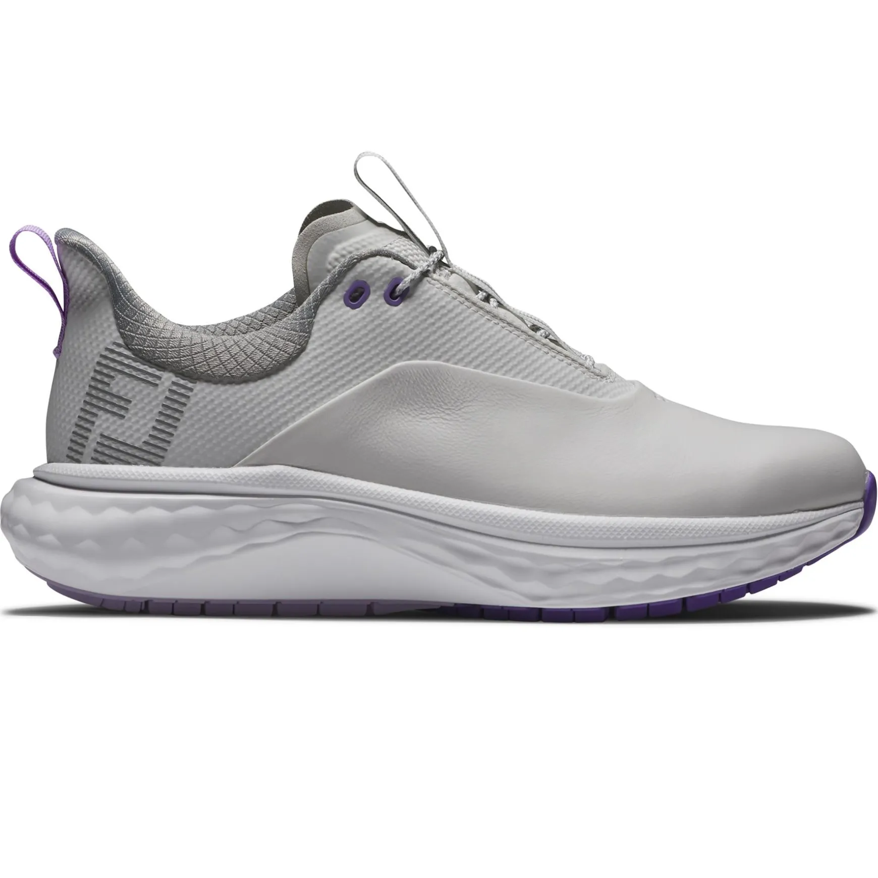 The FootJoy Women’s Quantum Golf Shoes in Grey/White/Purple deliver premium comfort and style for women golfers. Designed with advanced cushioning and innovative traction technology, these shoes ensure all-day comfort and peak performance. With a Performa Sport Last and lightweight construction, the Quantum Golf Shoes provide a sleek fit and superior support for every swing and step.