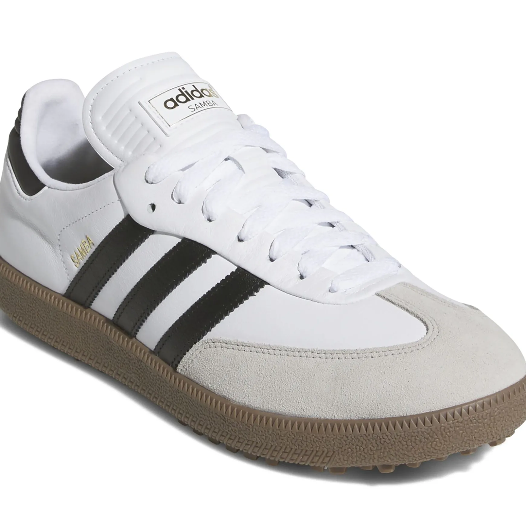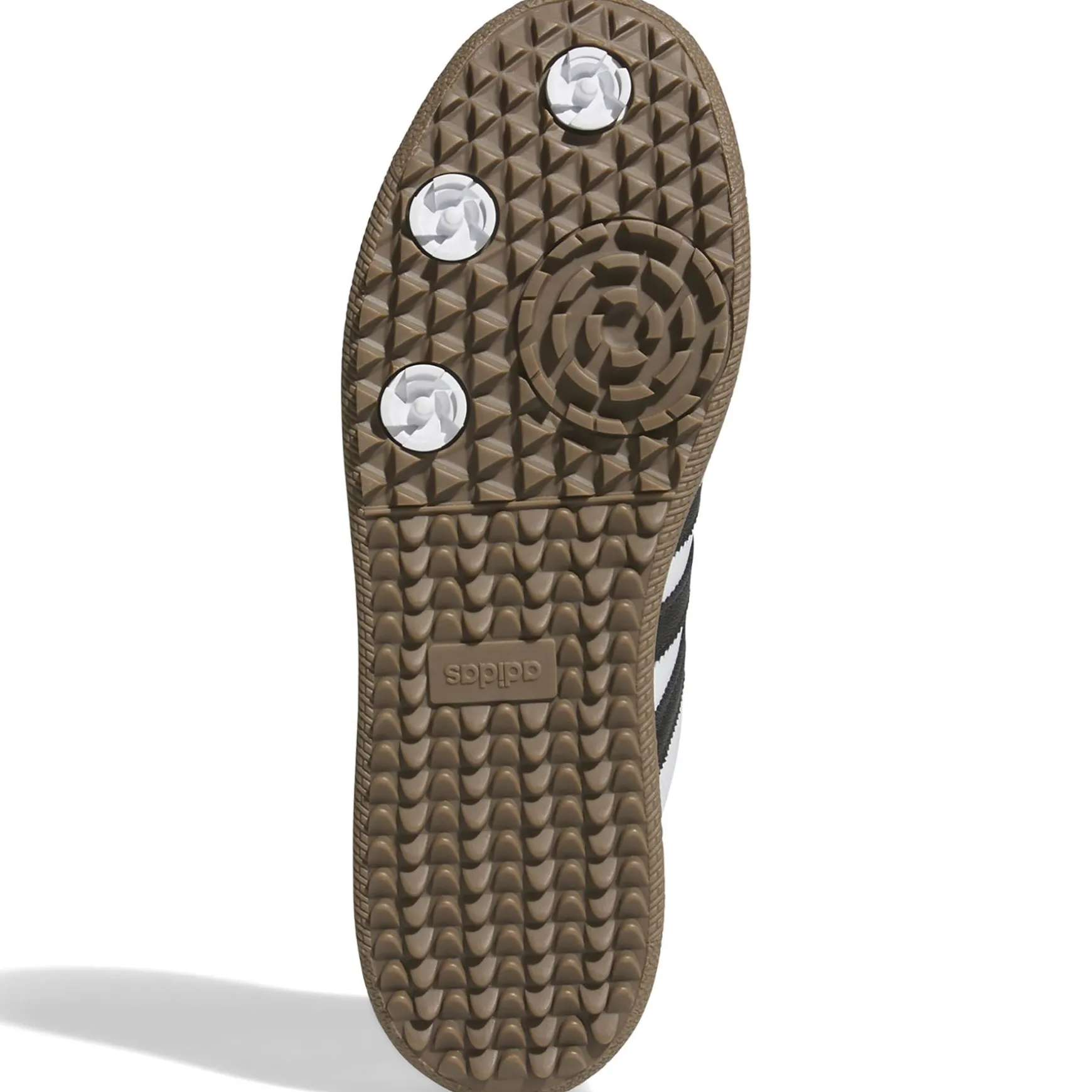 The Samba Spikeless Golf Shoes in Footwear White and Core Black from adidas offer a perfect fusion of iconic style and on-course performance. Inspired by the classic Samba design, these shoes are crafted with premium materials to provide both comfort and durability. The spikeless outsole ensures excellent traction and stability on various surfaces, while maintaining versatility for wear off the course. The crisp white upper, accented with core black details, delivers a clean, timeless look that pairs effortlessly with any golf outfit. Lightweight and flexible, these shoes offer a comfortable fit, ensuring you stay focused and stylish throughout your round.