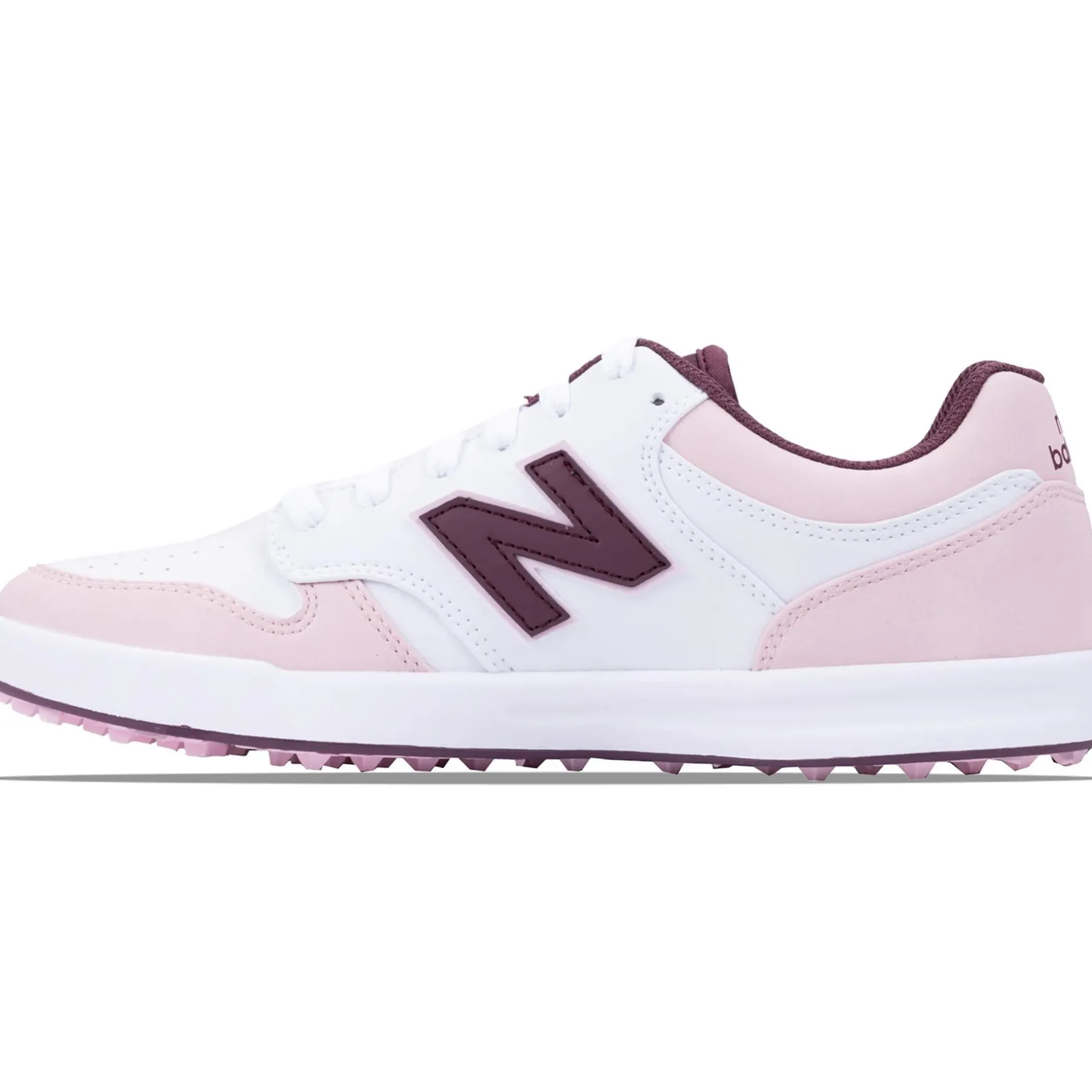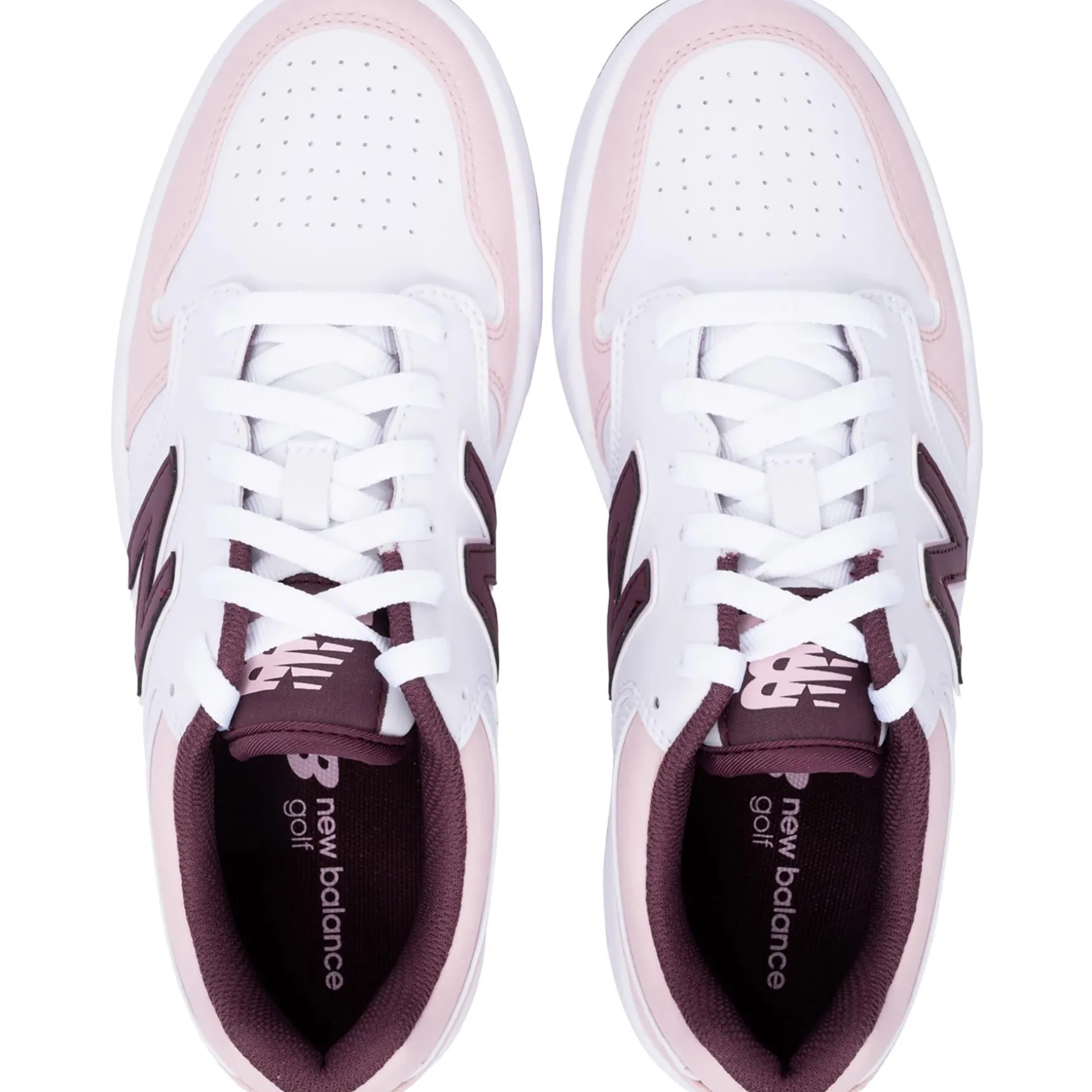 The New Balance Women’s 480 Waterproof Spikeless Golf Shoes in White/Light Pink combine classic court-inspired style with modern golf performance, offering exceptional comfort, durability, and traction. Designed with a sleek, retro silhouette, these shoes bring a stylish edge to the course while ensuring top-tier functionality. Built with a waterproof microfibre leather upper, these shoes provide long-lasting protection against wet conditions, keeping your feet dry and comfortable throughout your round. The NDurance spikeless rubber outsole allows for natural foot movement, delivering optimal grip, flexibility, and durability for stability and confidence on any surface.