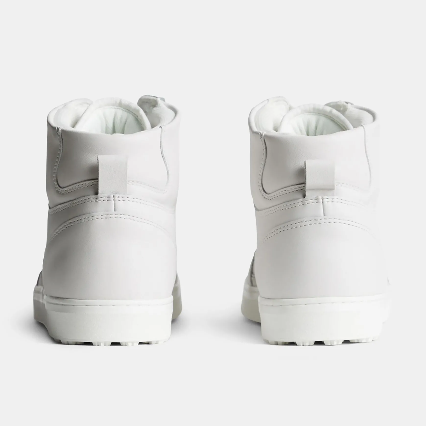 The J.Lindeberg Ace High-Top Golf Shoes in White combine bold style with advanced performance features for a standout look on the course. These high-top shoes are designed for ultimate support and stability, featuring a durable, lightweight construction that ensures comfort throughout your game. The spikeless sole provides reliable grip across various terrains, while the high-top design offers added ankle support. Complete with a breathable upper and the iconic Bridge logo, these shoes offer the perfect balance of fashion and functionality for golfers looking to elevate their game.