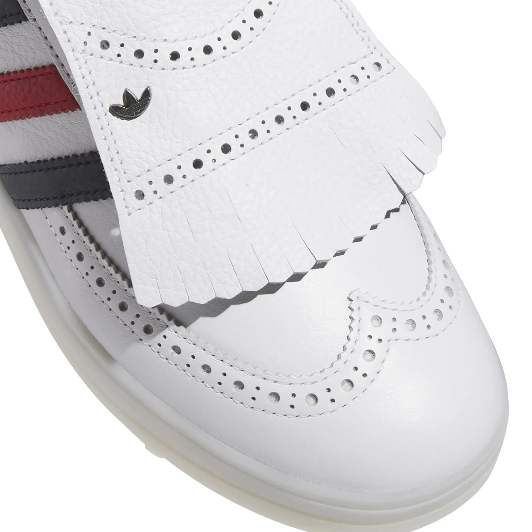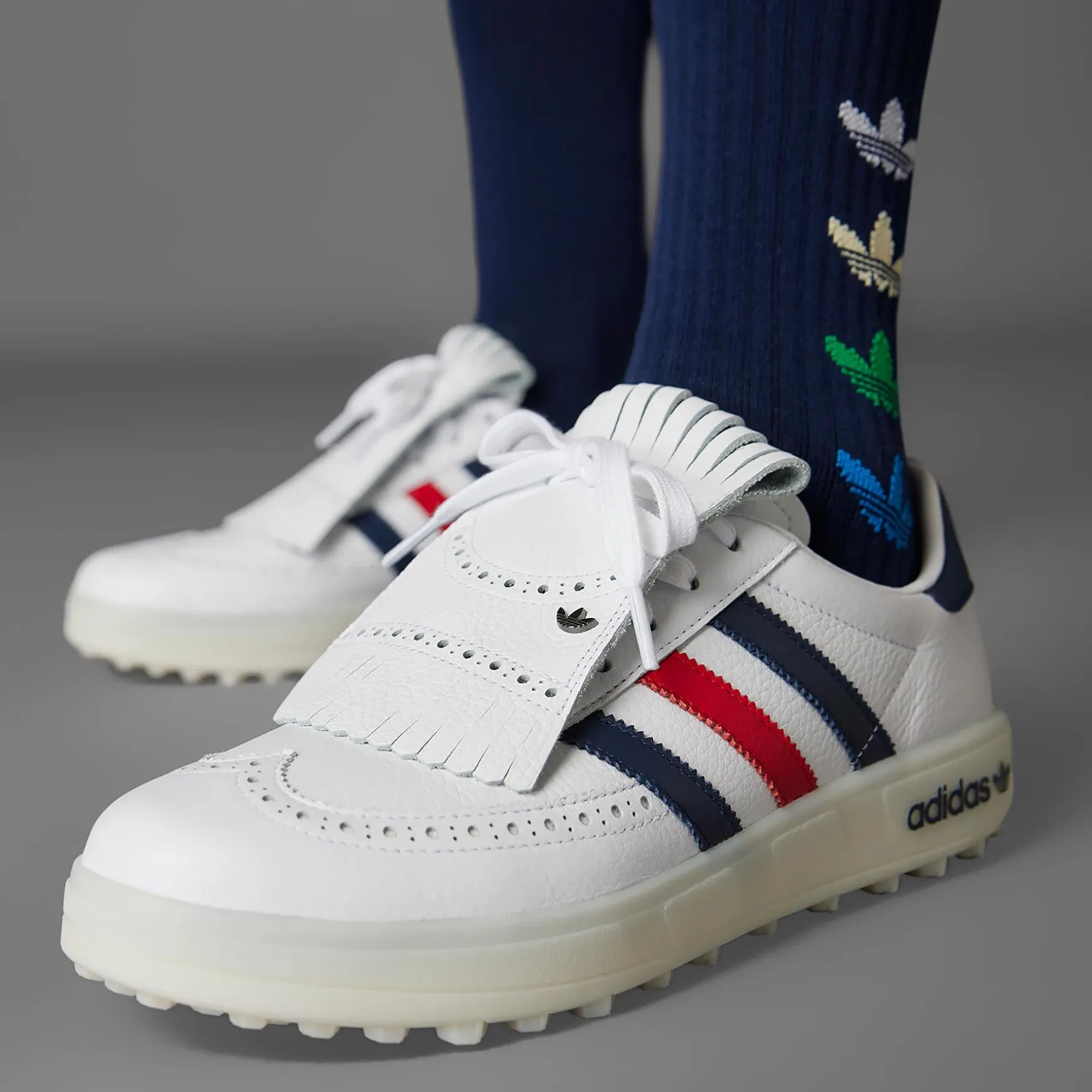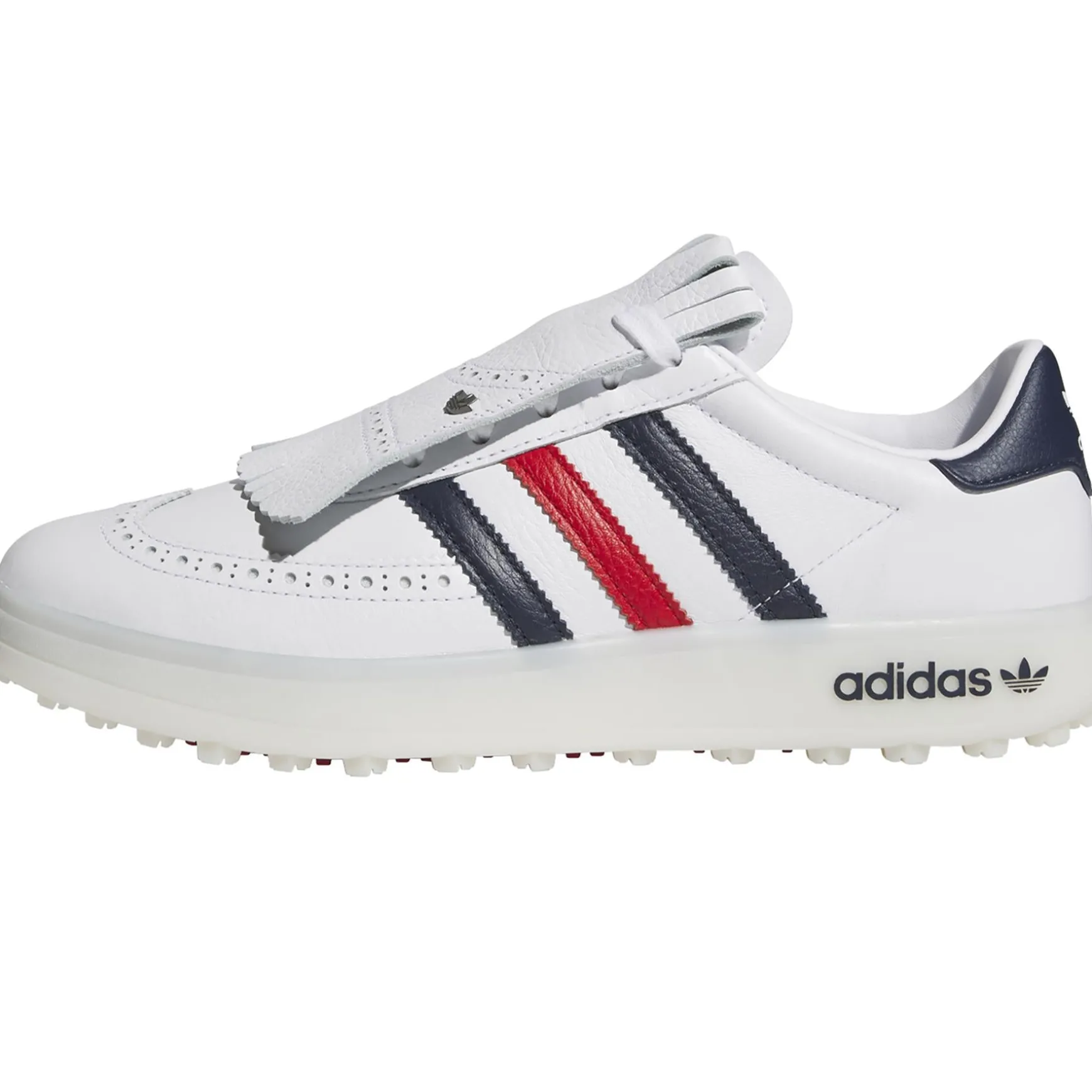 Upgrade your golf game with the adidas Golf Originals Coursecup Spikeless Golf Shoes in a striking white, indigo, and scarlet combination. These shoes are crafted for golfers who appreciate a blend of modern style and top-tier performance. The synthetic upper is lightweight and breathable, ensuring flexibility and comfort during long rounds. The spikeless outsole design offers versatile traction across different surfaces, making these shoes perfect for on and off the course. With added cushioning technology, these shoes provide responsive support for maximum comfort. The bold colourway and sleek silhouette make the Coursecup an essential addition for any golfer looking for a stylish edge without sacrificing functionality.