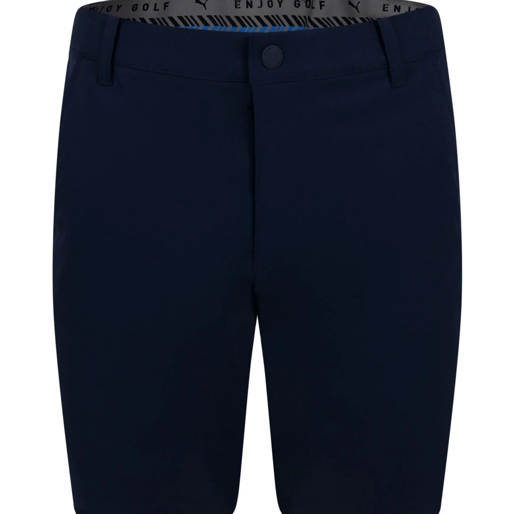 Introducing the Puma Golf Dealer Shorts – a pinnacle of style and performance crafted for the modern golfer. Immerse yourself in the perfect blend of innovation and comfort, ensuring you step onto the course with confidence and flair. Designed with a performance fit, these shorts offer a sleek silhouette that complements your active lifestyle on the golf course. The incorporation of dryCELL technology ensures you stay cool and dry, even during the most intense rounds. Experience the luxury of double-weave fabric that not only enhances durability but also provides a sophisticated touch to your golf ensemble. With side and back pockets, these shorts offer practicality without compromising style, while the PUMA cat rubber patch logo on the back right pocket adds a subtle yet distinctive brand touch.