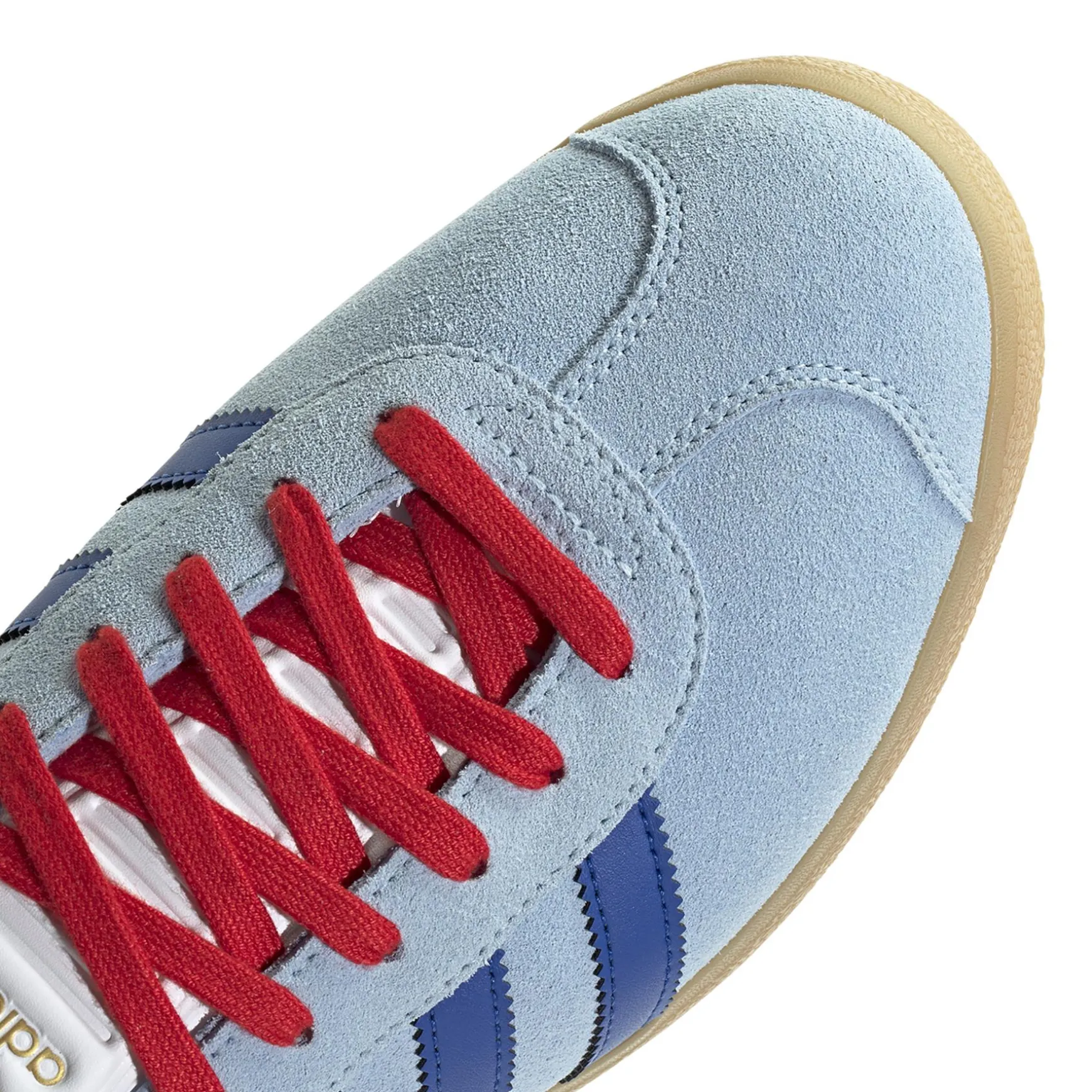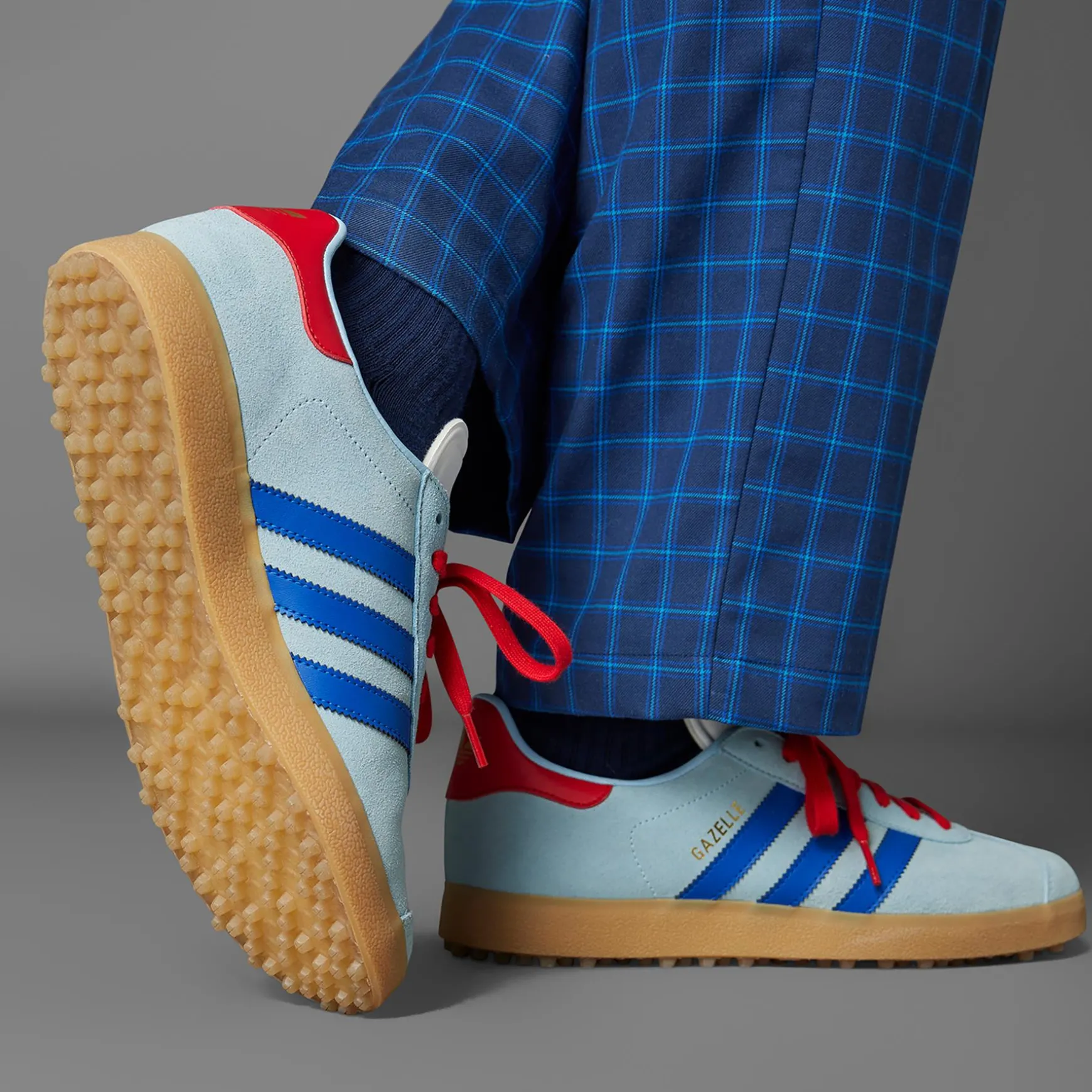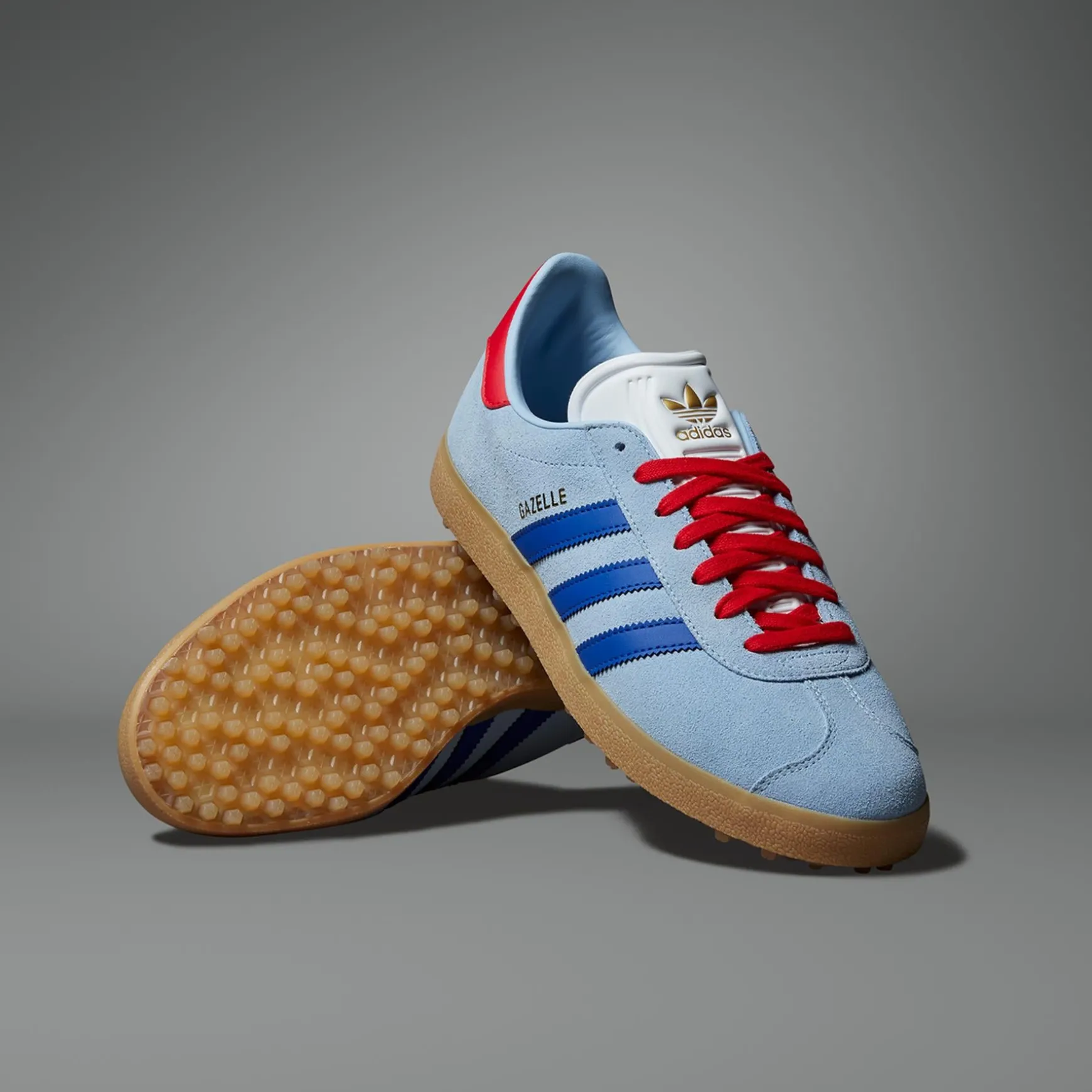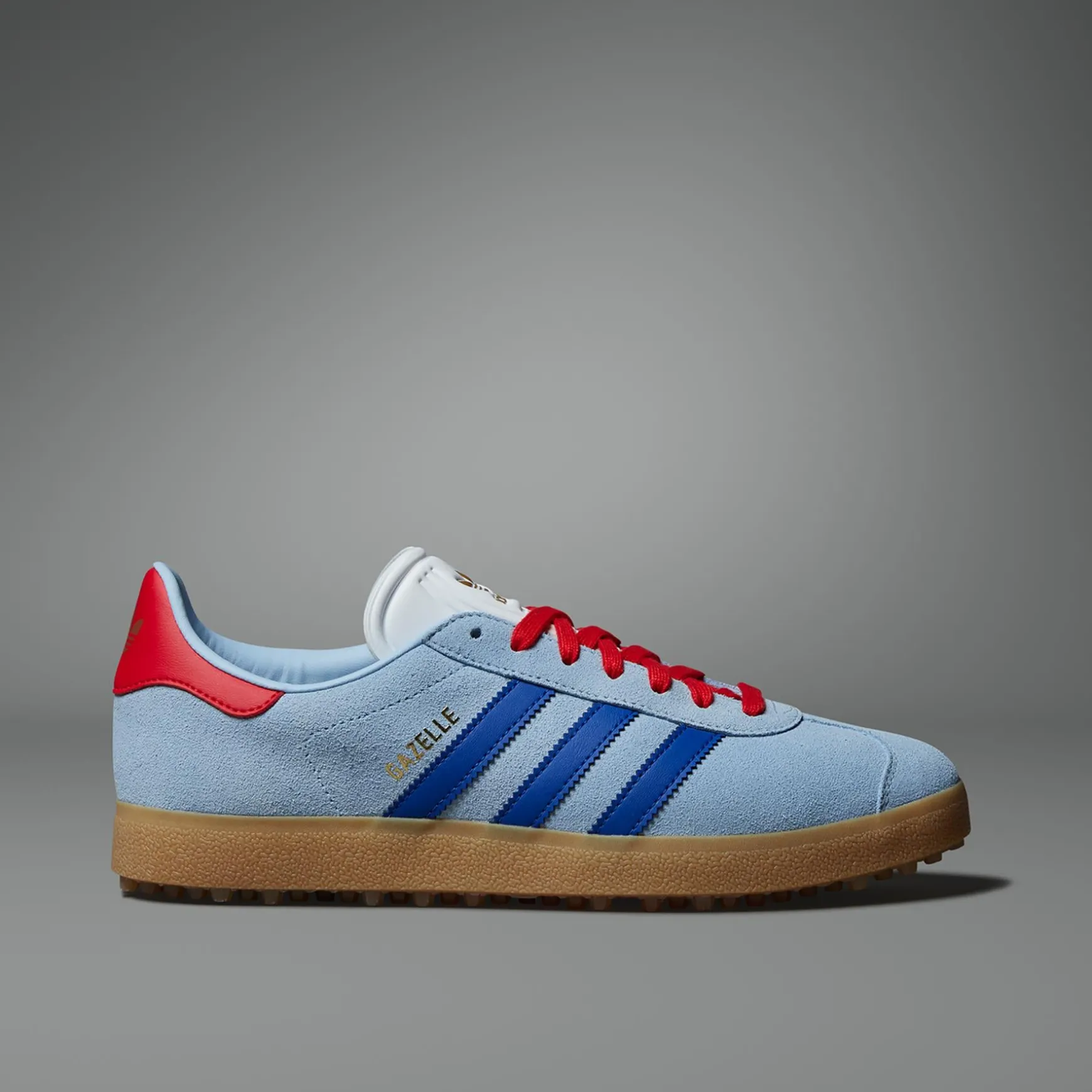 Show off your style with the adidas Golf Originals Gazelle Spikeless Golf Shoes in Clear Sky/Blue. Designed with the iconic Gazelle silhouette, these shoes blend classic aesthetics with modern golfing performance. The synthetic upper provides lightweight durability and breathability, keeping your feet comfortable during every swing. Featuring a spikeless outsole, these shoes deliver reliable traction across various surfaces, perfect for both the course and casual settings. Enhanced with cushioning technology, they offer responsive support for long rounds. The vibrant colourway adds a fresh look to any golf outfit, making them an ideal choice for golfers who appreciate both style and functionality.