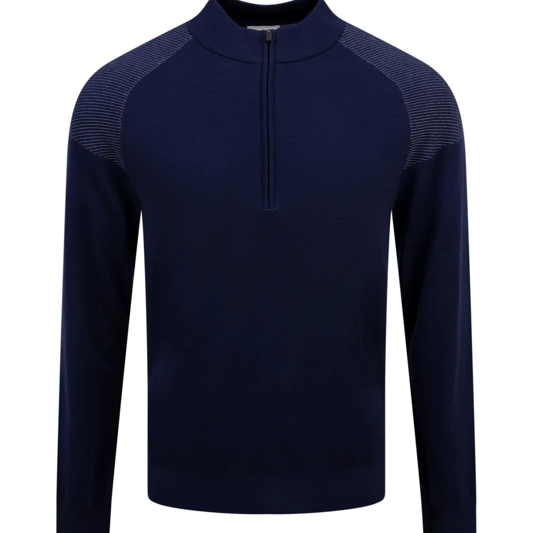 The KJUS Kulm Half Zip Mid Layer in Atlanta Blue combines premium comfort with advanced performance, making it an essential layering piece for any active lifestyle. This two-layer knit sweater is crafted with moisture-wicking yarn that keeps you dry and comfortable, even during intense activity. The Kulm Half Zip offers natural thermoregulation and odour control, thanks to its high-quality materials, making it perfect for long days on the course. Its body-mapped back ventilation zones enhance breathability and allow for unrestricted movement, ensuring you stay comfortable no matter the weather. With a ribbed stand-up collar and a sleek, tailored fit, this mid layer provides both style and function.
