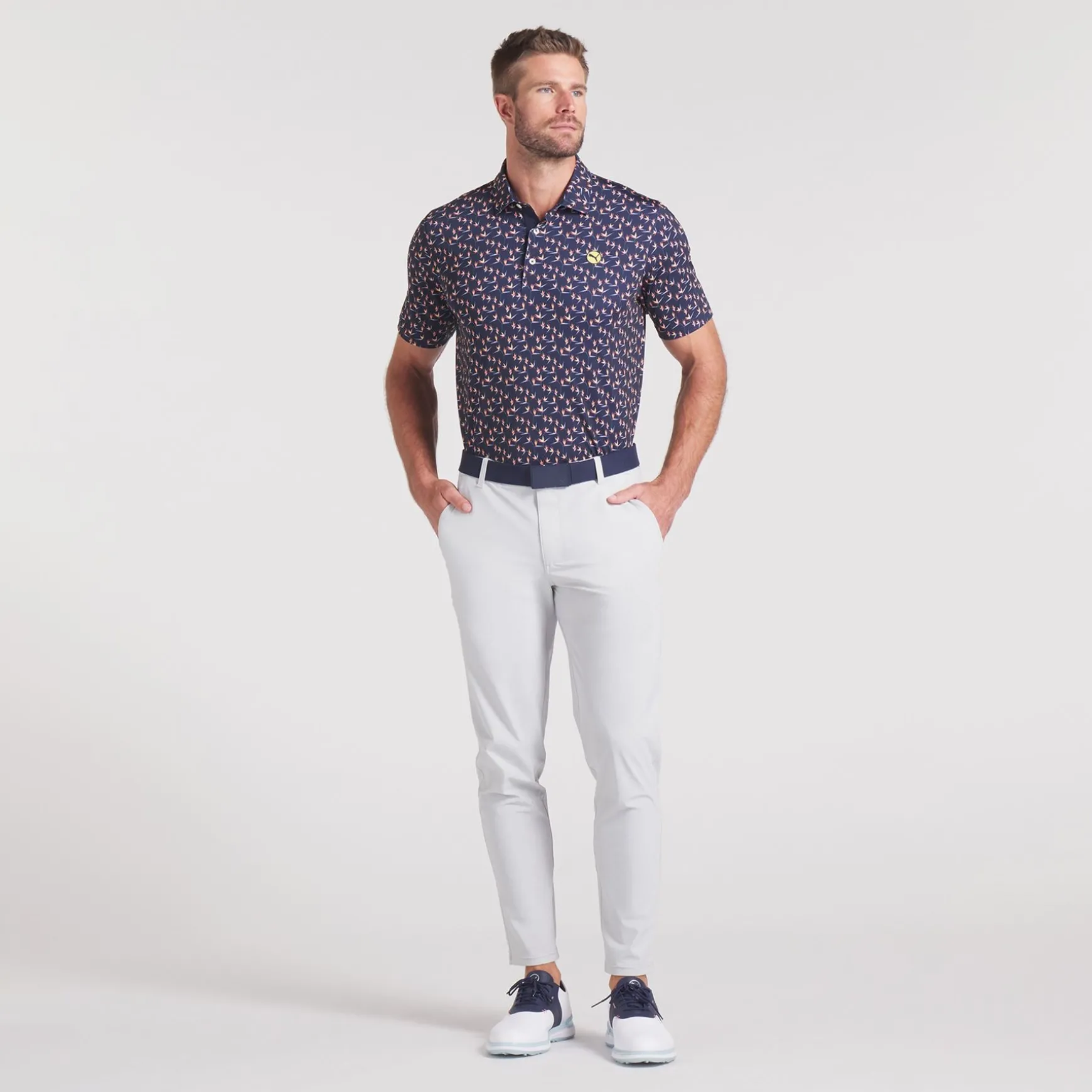 * Vibrant Deep Navy/Sunny Yellow Colour Combination: Adds a bold, stylish touch to your golf wardrobe.
