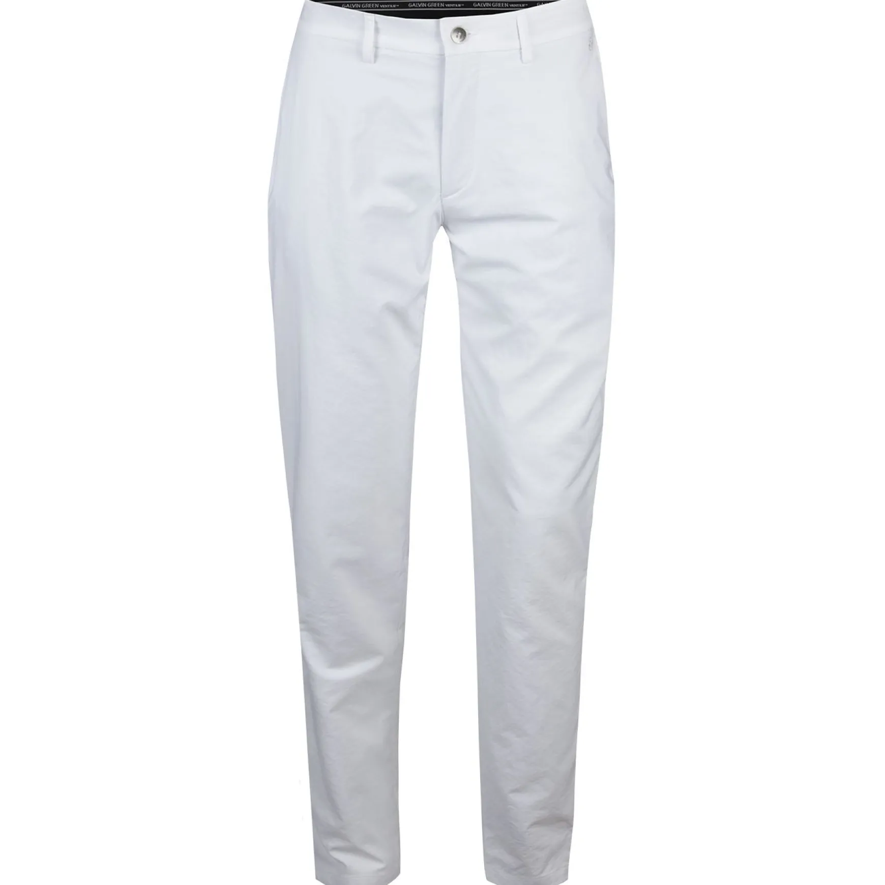 The Galvin Green Noah Ventil8+ Trousers in White offer the perfect combination of style, comfort, and functionality for the modern golfer. Designed with a shirt gripper waistband and stretch function, these trousers ensure a secure and flexible fit, allowing for ease of movement on the course. With practical front and back pockets, they provide ample storage for your essentials while maintaining a sleek, stylish appearance. Featuring UV protection of 20+, they are ideal for sunny days, keeping you cool and protected. Pair them with a sharp golf shirt for a crisp, clean look that’s perfect for any game.