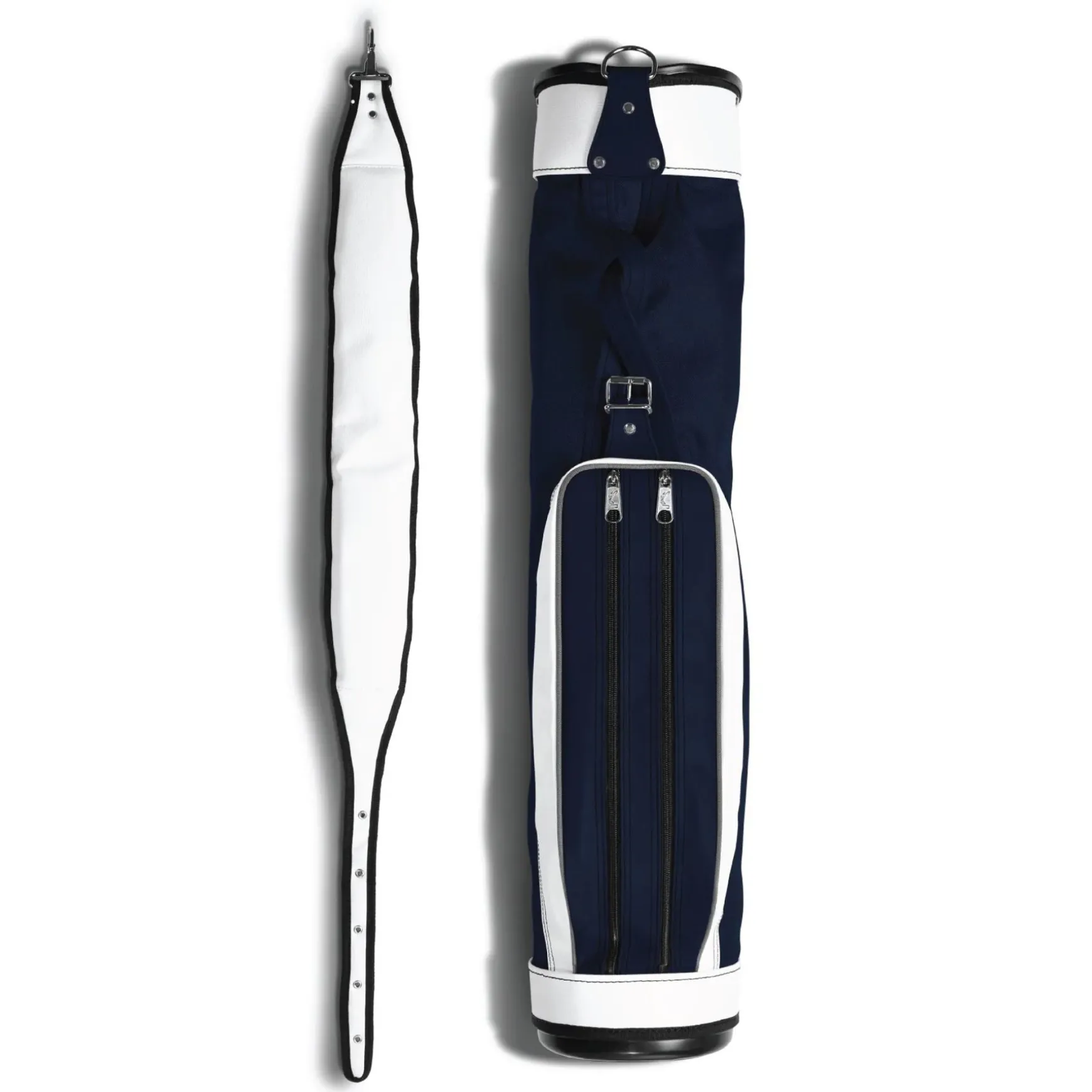 Introducing the Classic Jones Bag from Jones Golf Bags – The name says it all: Original Jones. This is the golf bag that started it all in 1971 and has become one of the most iconic bags in the game. Combining traditional George Jones stylings with modern materials, the Original is designed specifically for the walking golfer. Water-resistant nylon keeps grips dry for those dew-sweepers and all-weather players. The retro single strap and unstructured body pay homage to keep golf simple, while three pockets provide plenty of room for your playing necessities. Make your walk more enjoyable by carrying the Jones Original. Experience the legacy of the Original Jones Bag, where tradition meets innovation, ensuring style and functionality for every round.