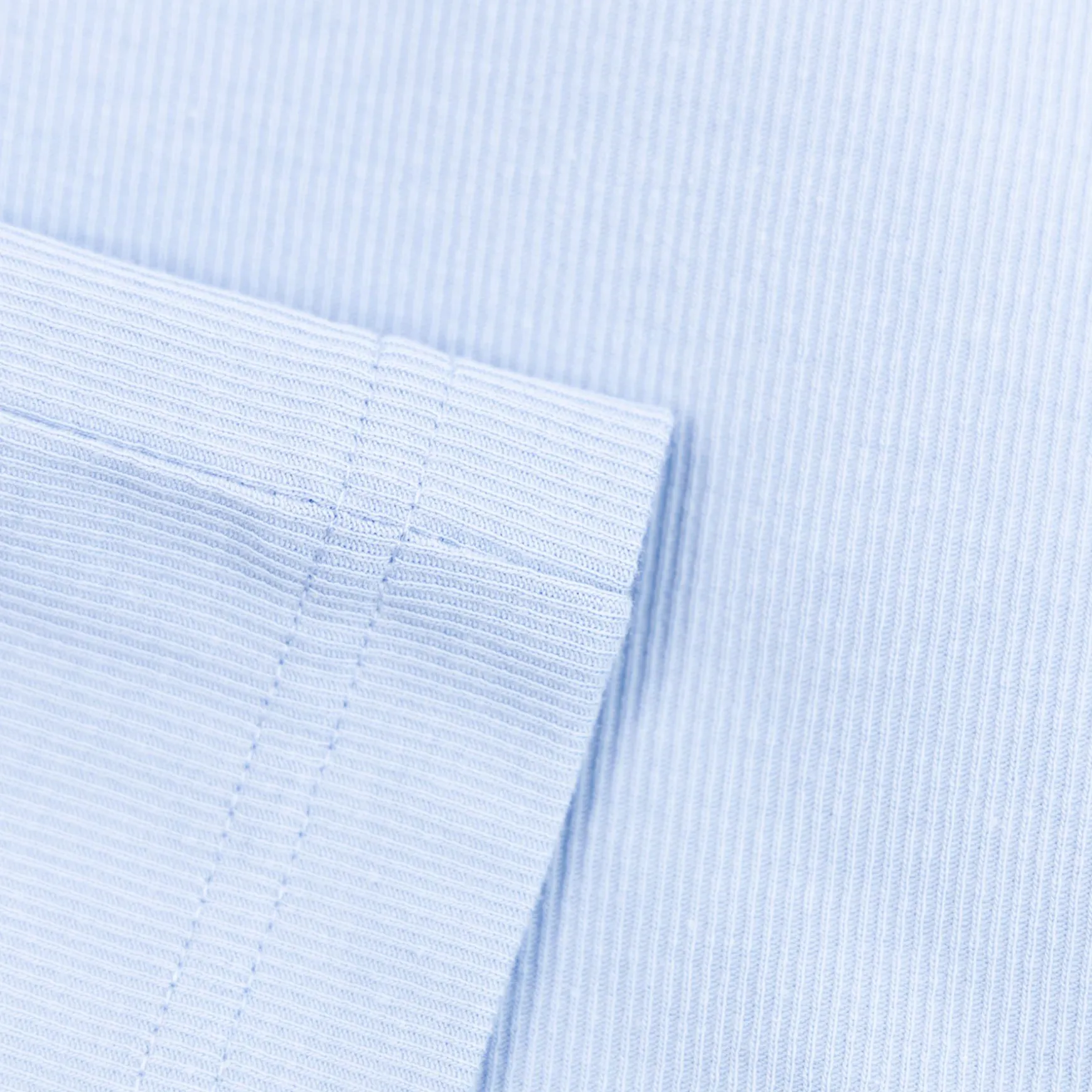 * Rib-knit collar and cuffs with modern contrast tape detailing