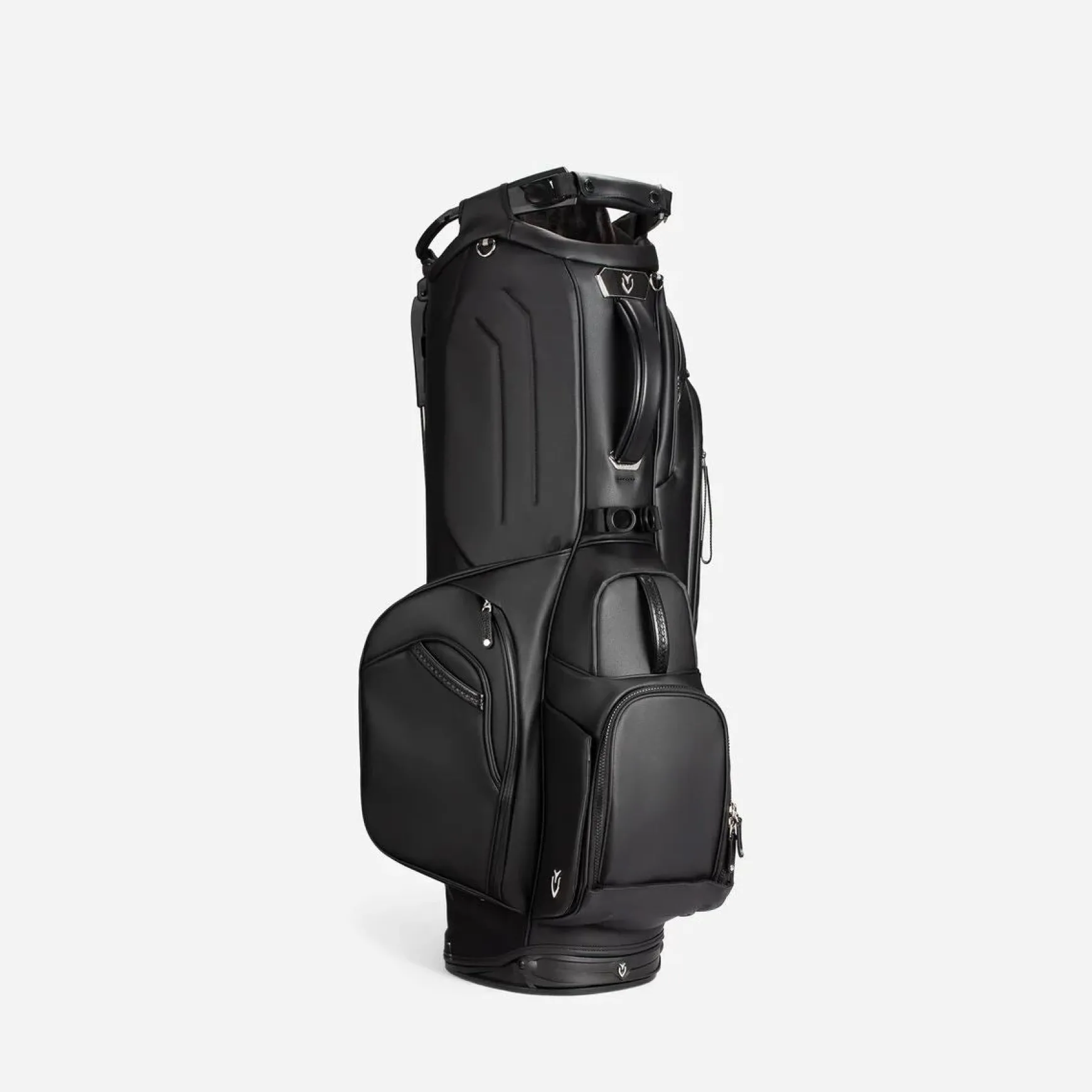 The Vessel Player V Pro Pebbled 7-Way Stand Bag in Black is the definition of high-performance luxury on the golf course. Crafted with a pebbled texture finish and designed for total functionality, this bag is engineered for golfers who demand elite quality and thoughtful detail. Featuring a 7-way top with dedicated putter storage and offset dividers, the Player V Pro ensures perfect club organisation and retrieval. Patented innovations such as the Equilibrium 2.0 Double Strap and Rotator Base provide outstanding balance and stability whether you’re walking or using a trolley. With sleek styling and smart on-course features, this is a true statement of sophistication and performance.