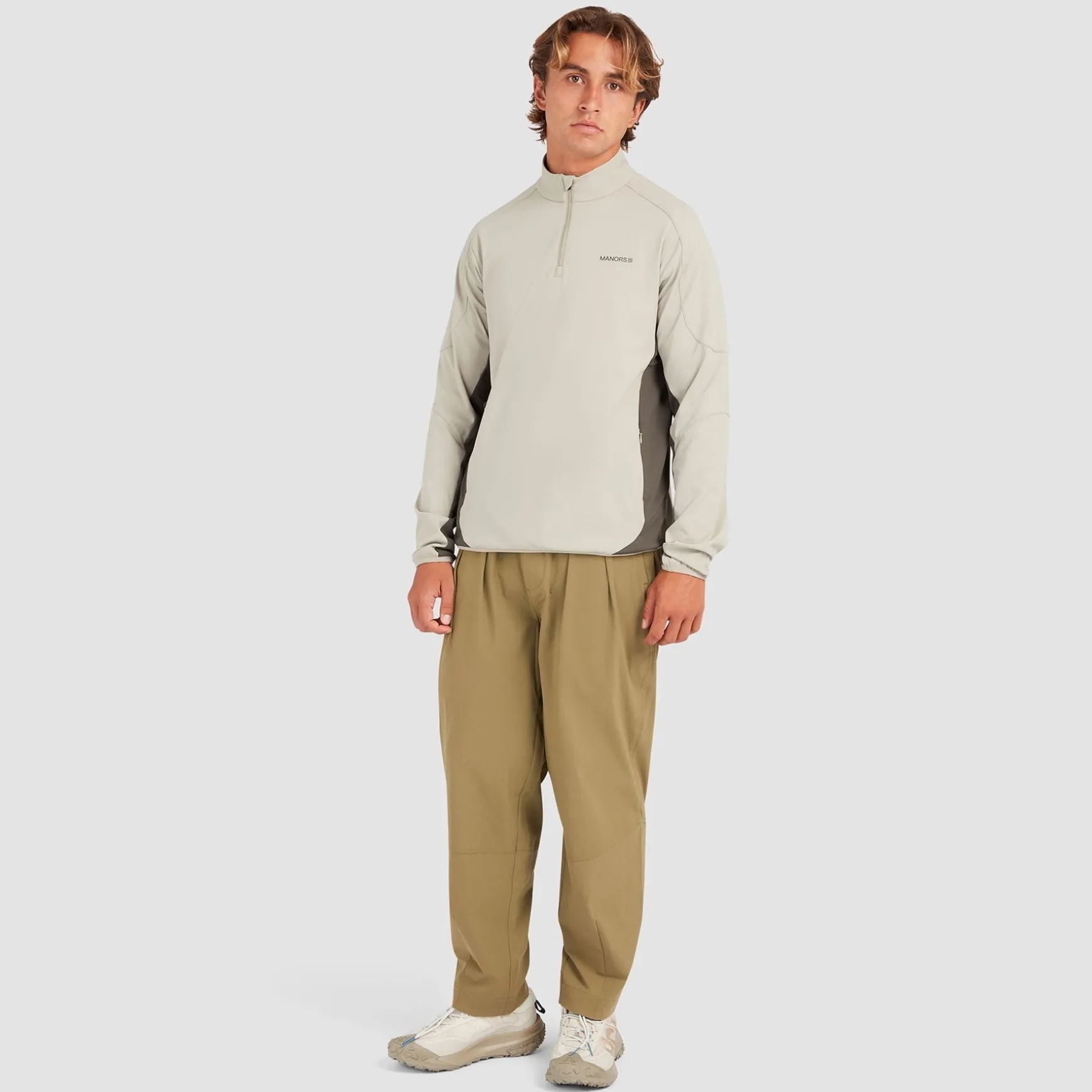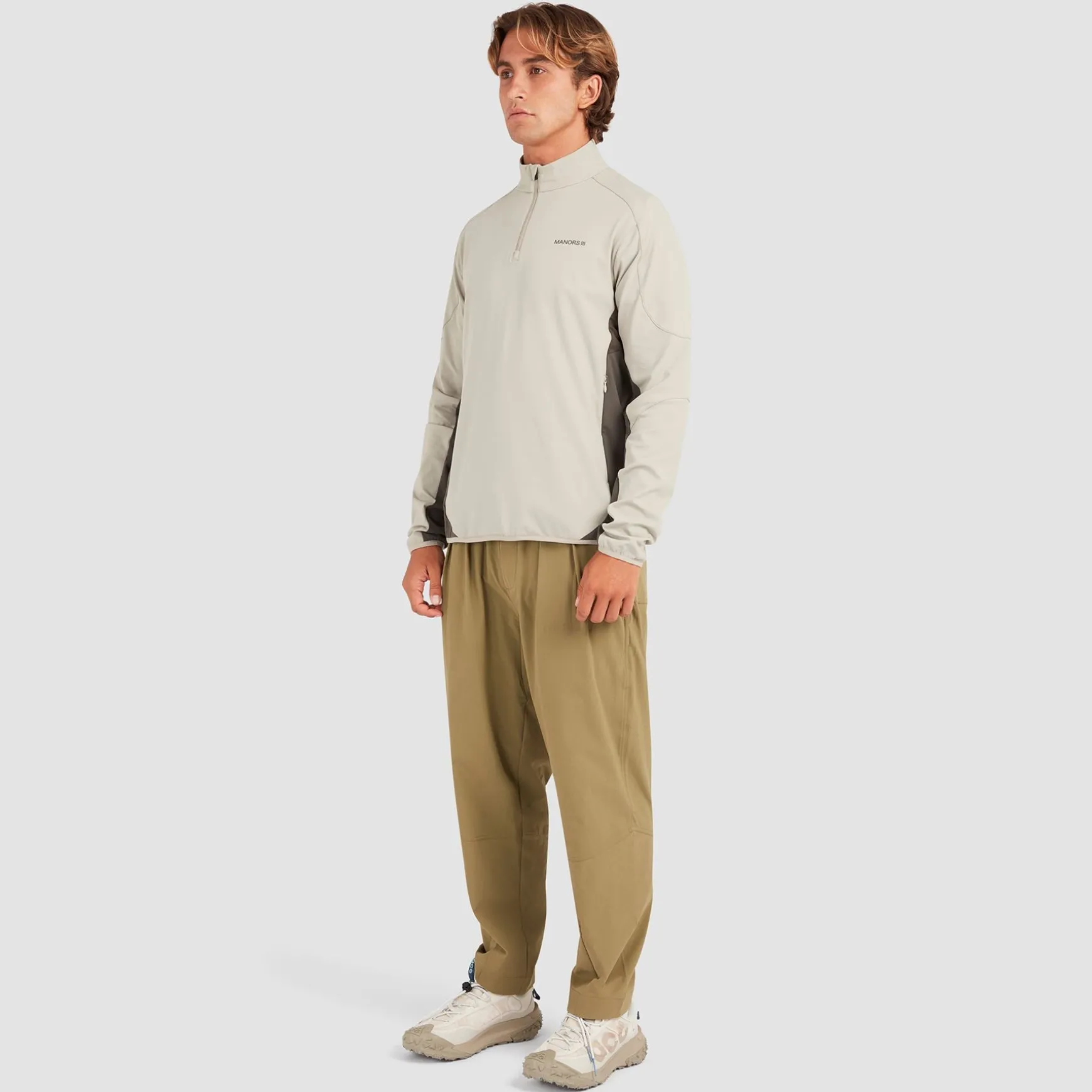 * Tapered Fit: Cuff and hem binding offer a streamlined, athletic fit.