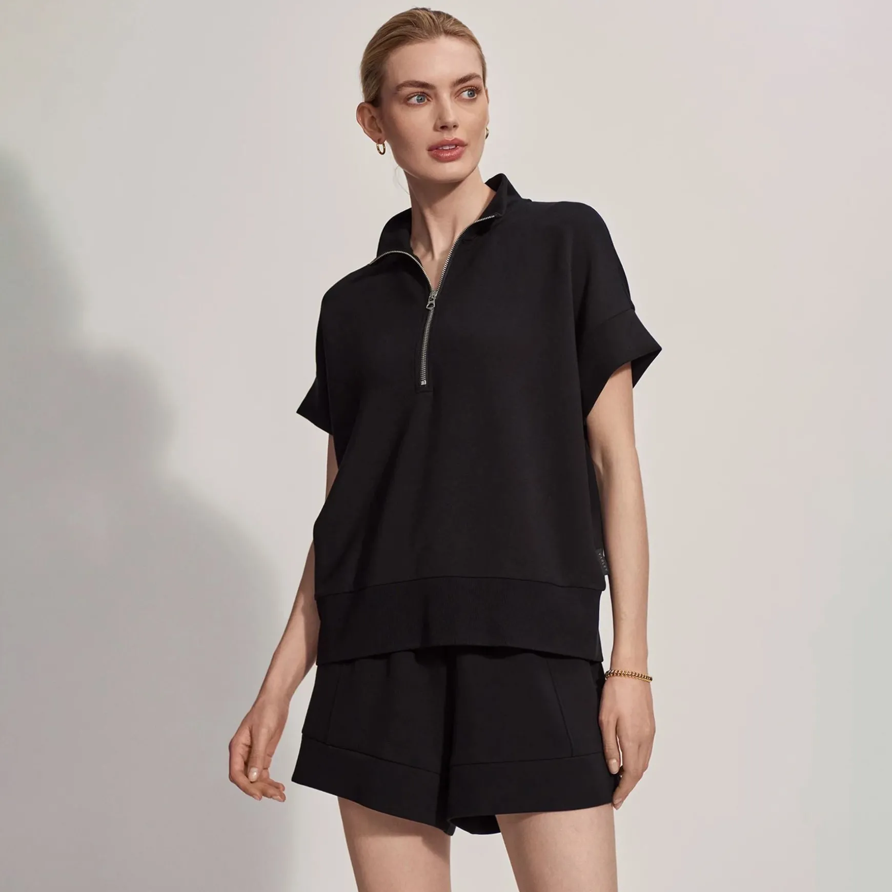 * Mock neck: Offers a sleek, structured finish