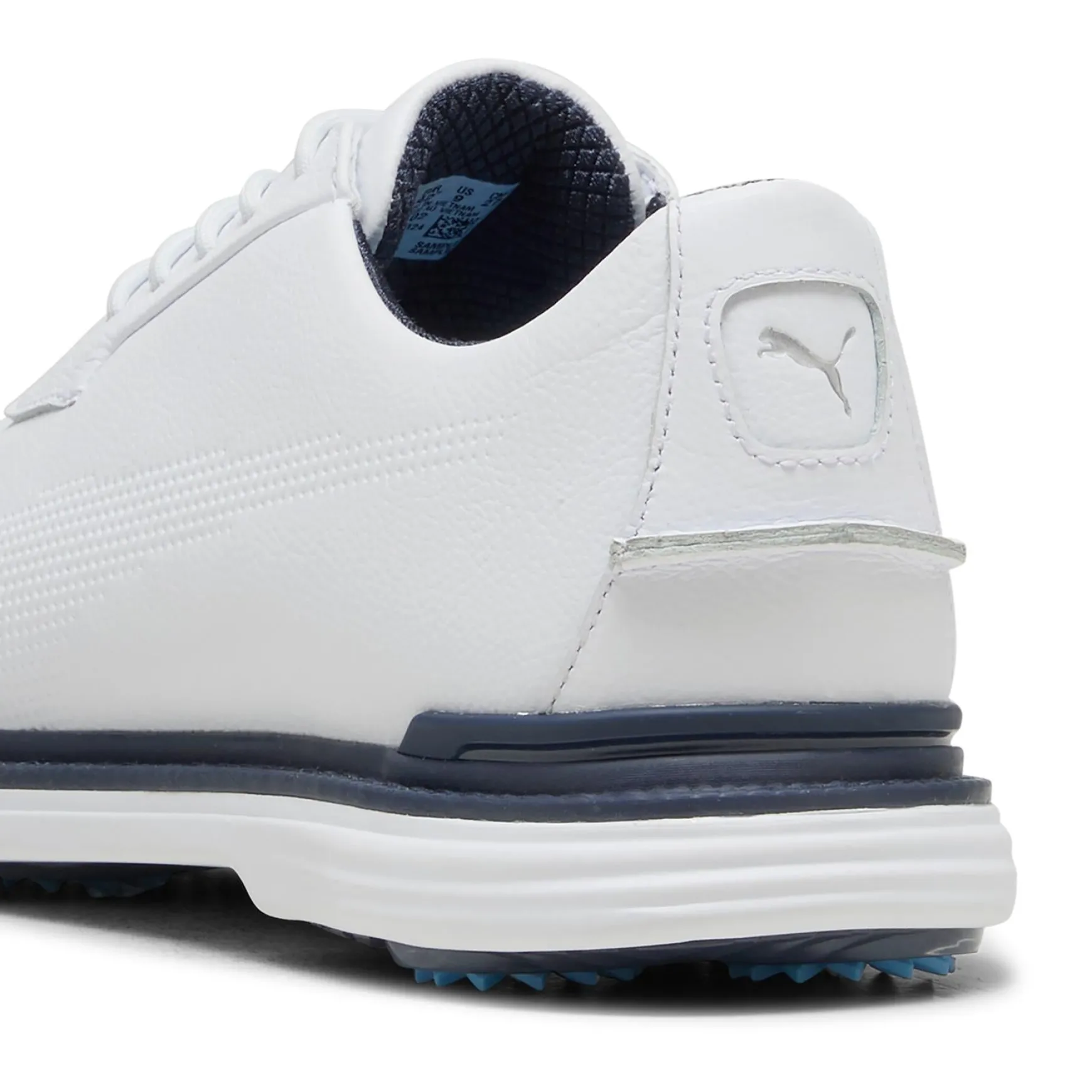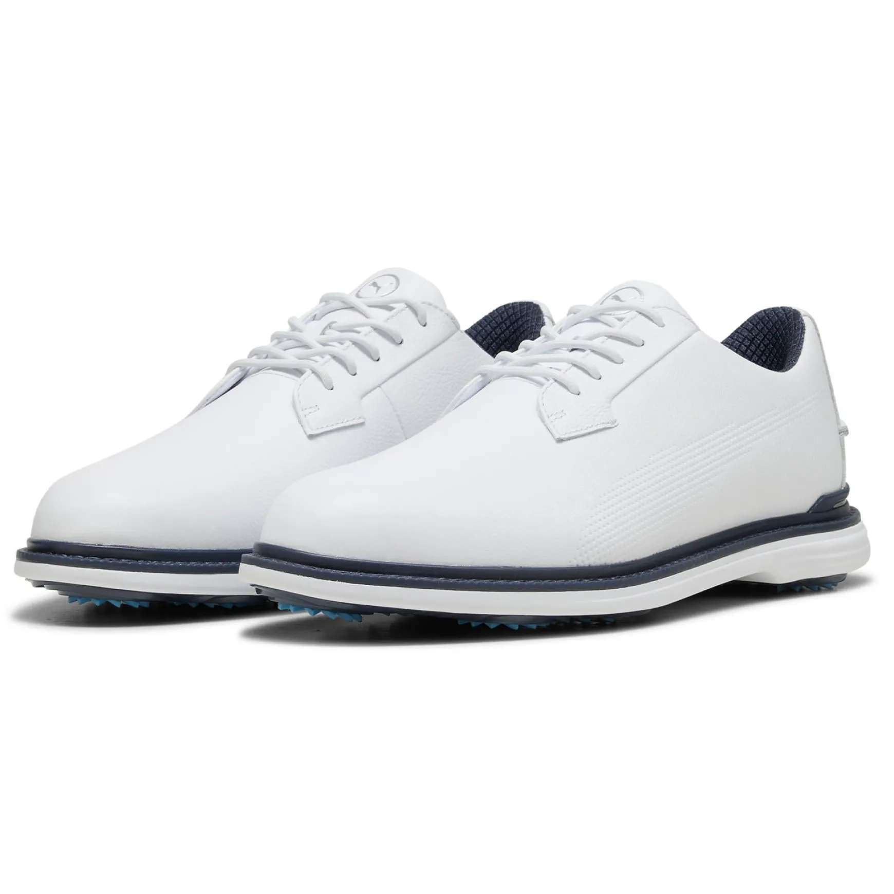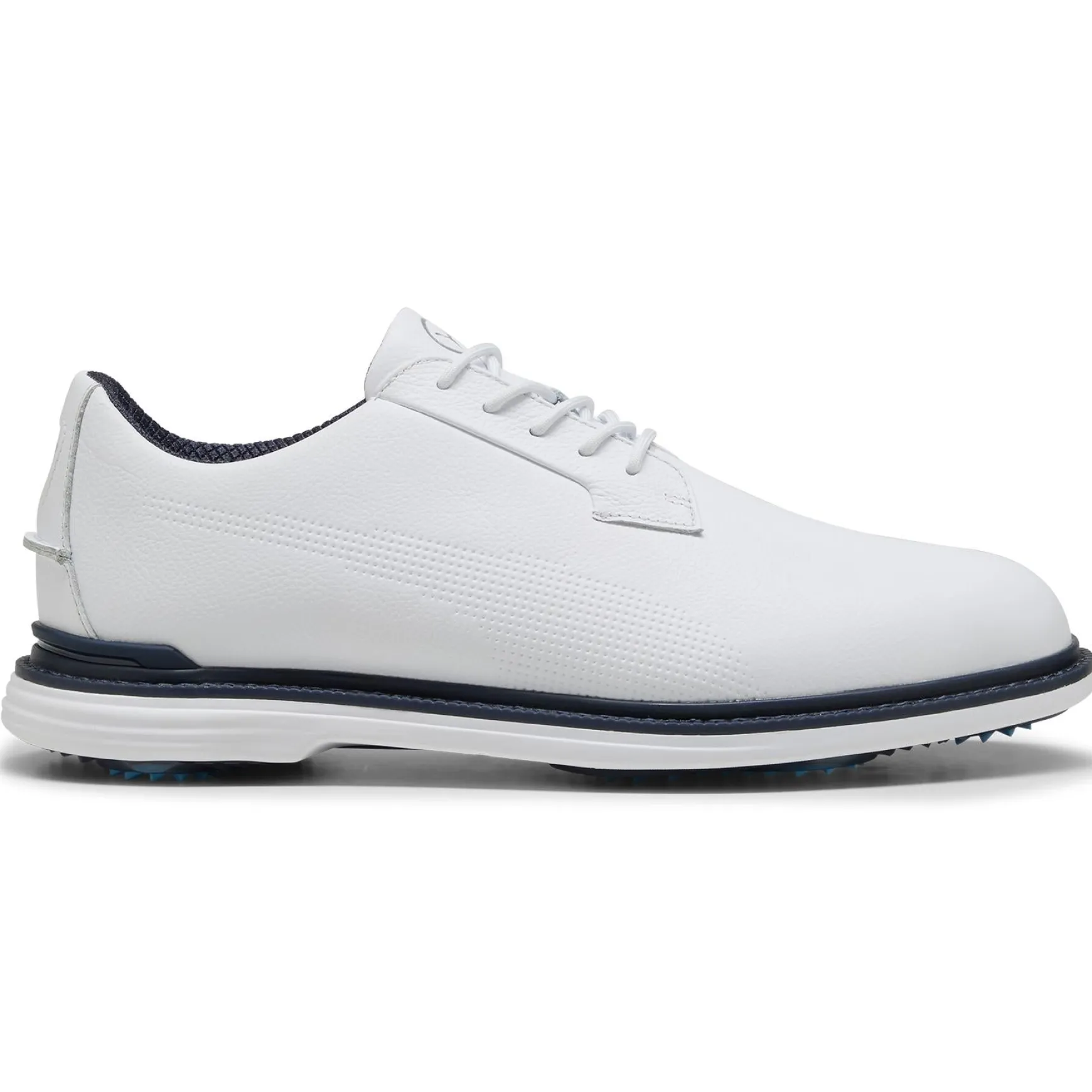 Designed for serious golfers, the Puma Royale Golf Shoes in Puma White/Deep Navy/Team Light Blue combine premium craftsmanship with cutting-edge performance features. Constructed with a full-grain leather upper, these shoes offer classic style with modern durability, while the PROFOAM midsole provides superior cushioning and responsiveness for all-day comfort. The FLEXSPIKE outsole delivers exceptional grip and stability, ensuring a strong foundation for every swing. With a stitched performance TPU welt and PROMOLD sockliner, these shoes provide a secure, cushioned fit, making them the ultimate blend of style and function on the course.