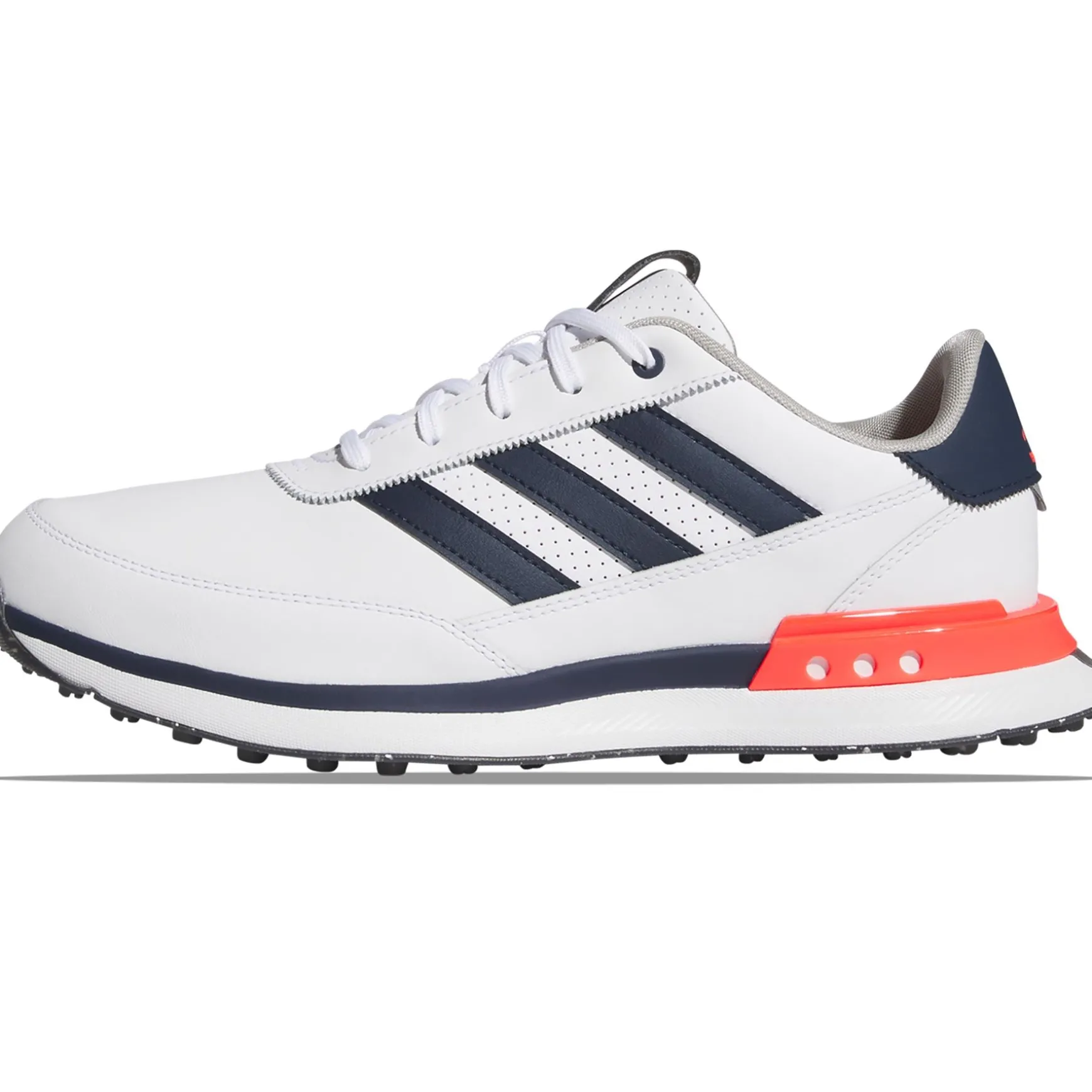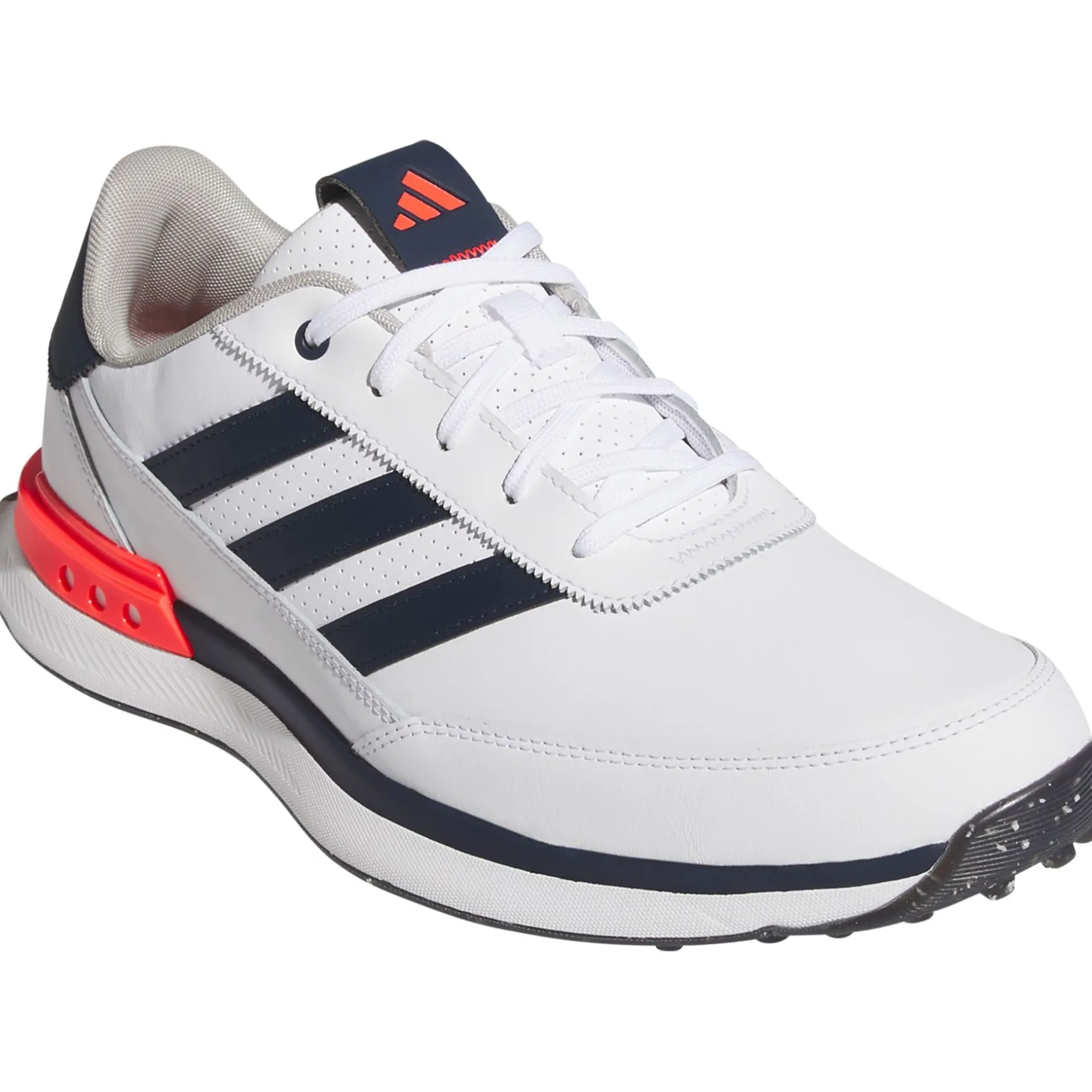 Bring premium performance and style to your game with the adidas Golf S2G Spikeless Leather 24 Golf Shoes in White, Navy, and Red. Designed for golfers who seek durability and sophistication, these shoes feature a premium leather upper that ensures a classic look and lasting comfort. The spikeless outsole offers versatile traction across various surfaces, making these shoes perfect for both on and off the course. The lightweight design and breathable materials keep your feet comfortable during extended rounds, while responsive cushioning technology provides enhanced support and comfort. The distinctive white, navy, and red colourway adds a stylish flair to complete any golf outfit.