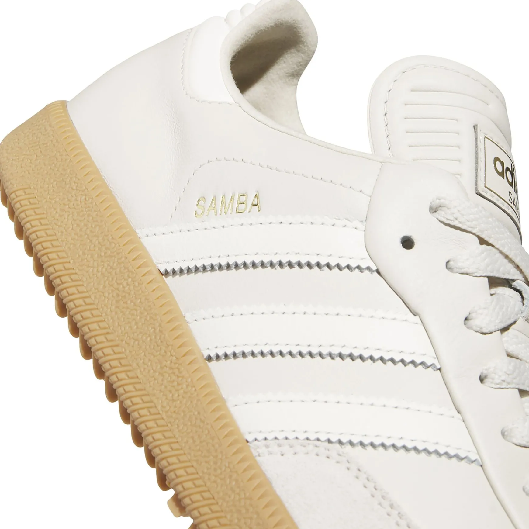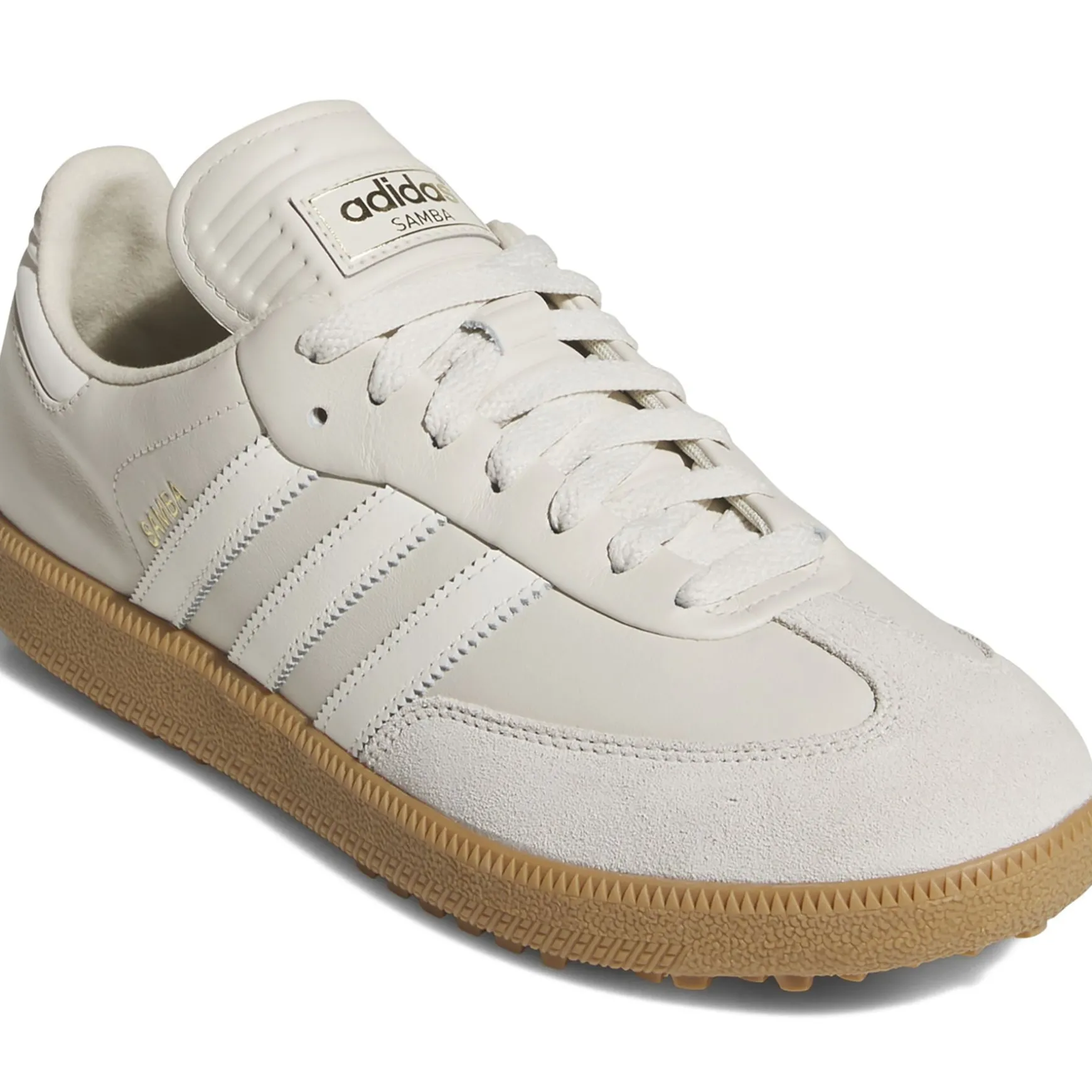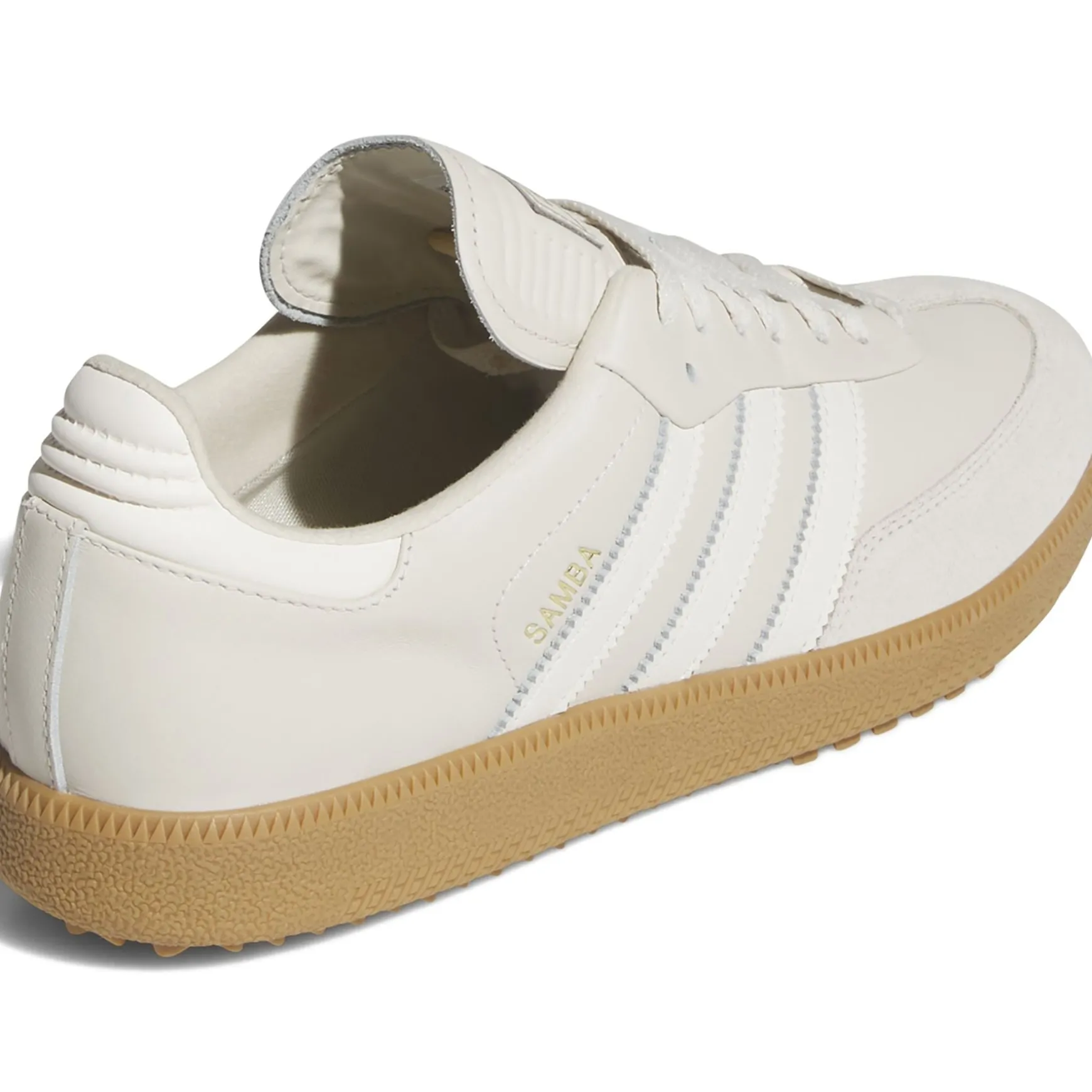 The Samba Spikeless Golf Shoes in Alumina and White from adidas offer a stylish blend of heritage design and modern golf performance. Inspired by the iconic Samba silhouette, these shoes feature a premium leather upper in a sophisticated alumina shade, providing both durability and a refined look. The spikeless outsole ensures reliable traction and stability across various terrains, while maintaining the flexibility to transition seamlessly off the course. The alumina and white colour combination delivers a classic and versatile aesthetic, perfect for pairing with any golf outfit. Lightweight and comfortable, these shoes are designed to support your performance while keeping you looking sharp.